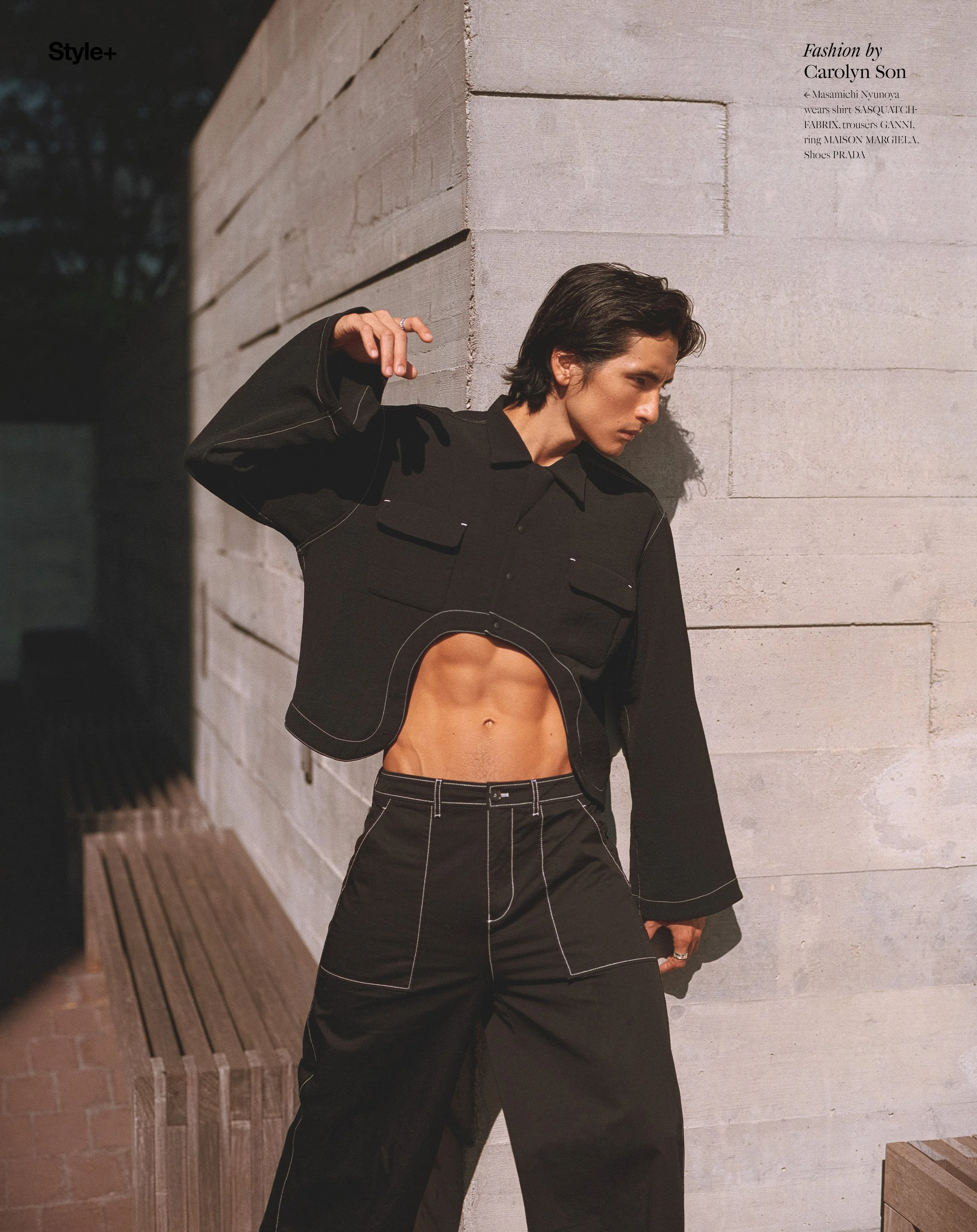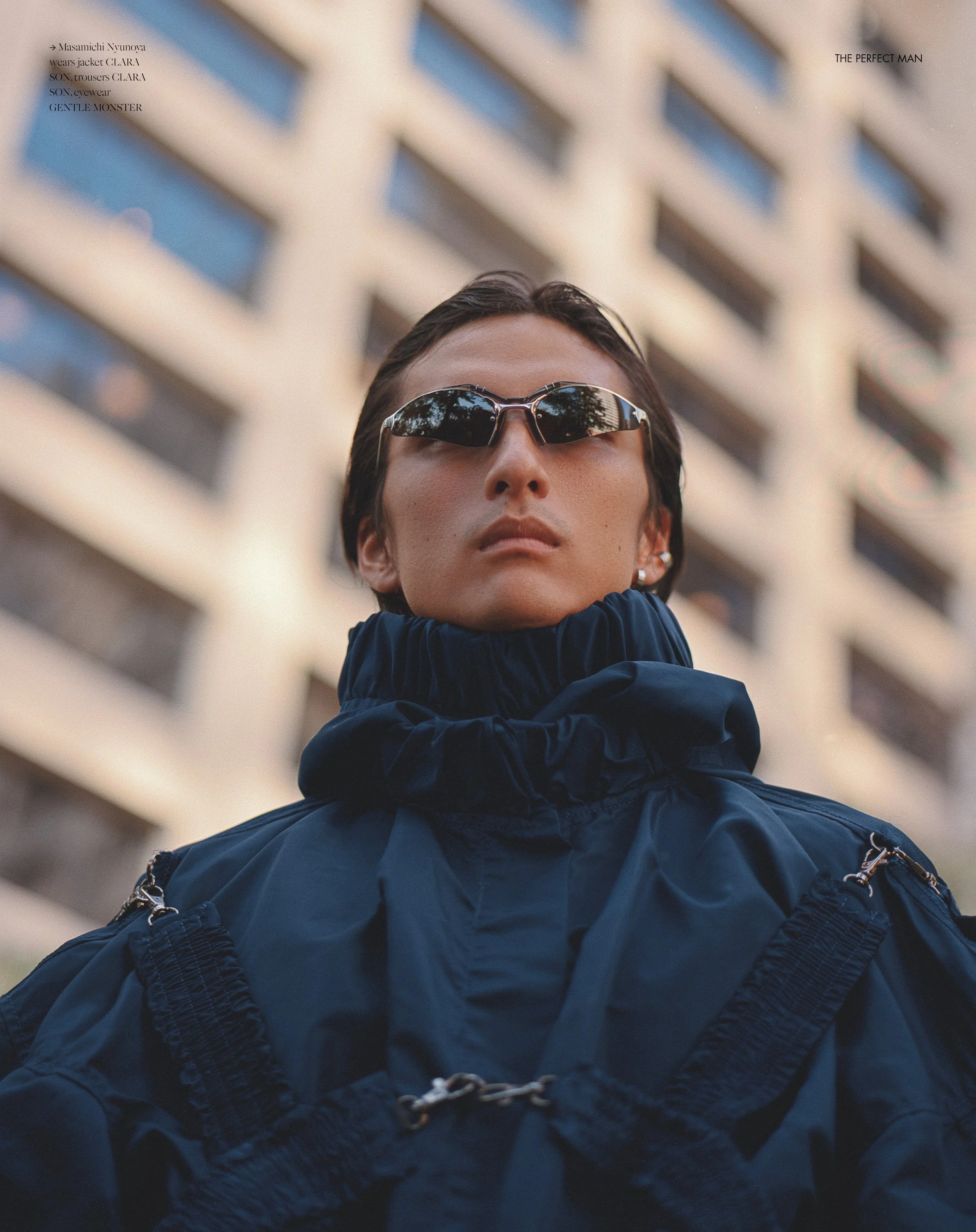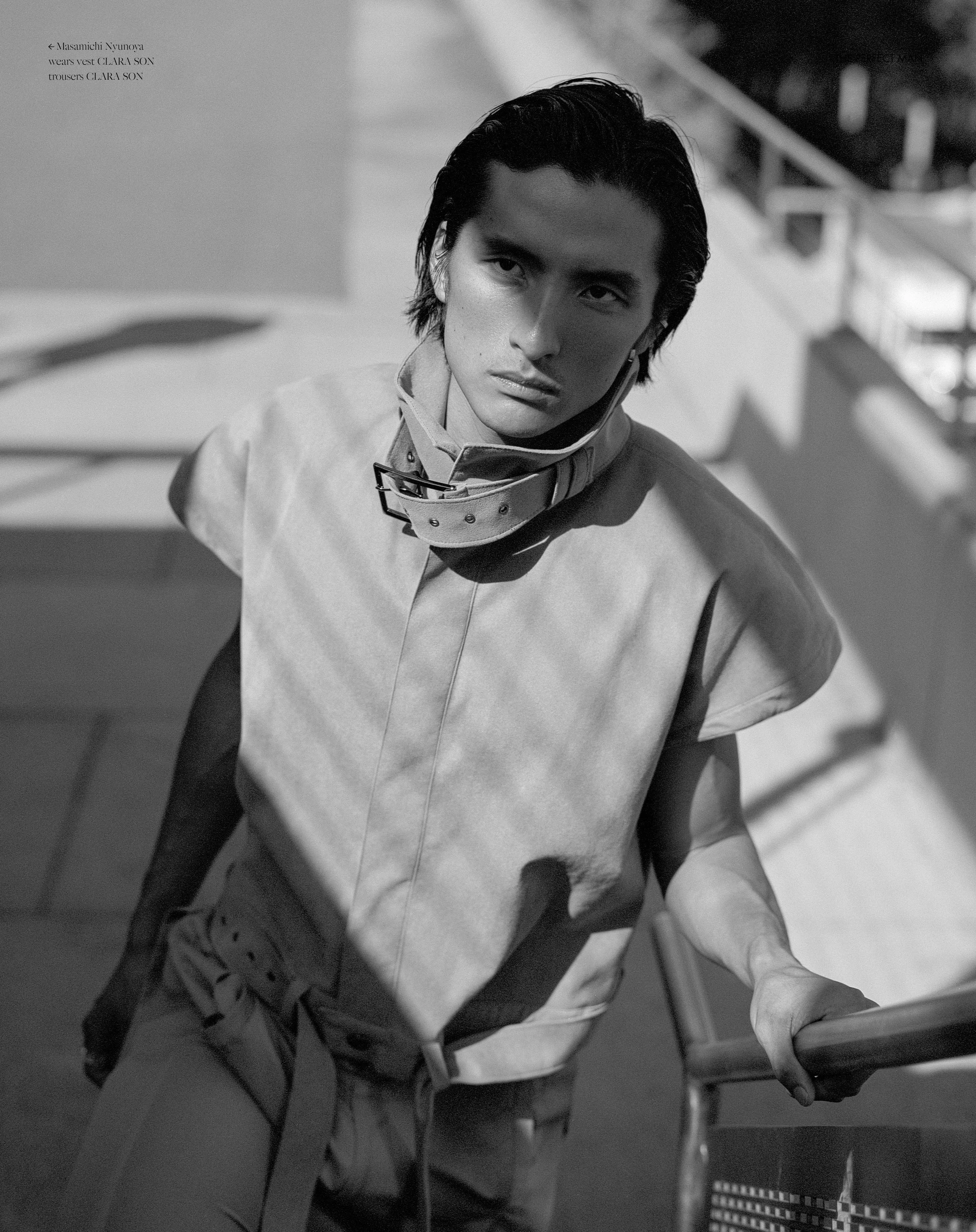 1-4. Masamichi Nyunoya wears shirt Sasquatchfabrix, trousers GANNI, ring MAISON MARGIELA, Shoes PRADA 5-6. Masamichi Nyunoya wears vest CLARA SON trousers CLARA SON 7-8. Masamichi Nyunoya wears jacket CLARA SON, vest CLARA SON, pants CLARA SON, white sneakers VANS 9-11. Masamichi Nyunoya wears dress DONG HYUN OH, vest RICK OWENS,pants PRADA 12-13. Masamichi Nyunoya wears black balaclava WOOYOUNGMI, jacket DONG HYUN OH, trousers PRADA, shoes: VERSACE 14-15. Masamichi Nyunoya wears jacket CLARA SON, trousers CLARA SON, eyewear GENTLE MONSTER 16-17. Masamichi Nyunoya wears vest WE11DONE, pants PRADA, bracelet UNNAMED IDENTITIES