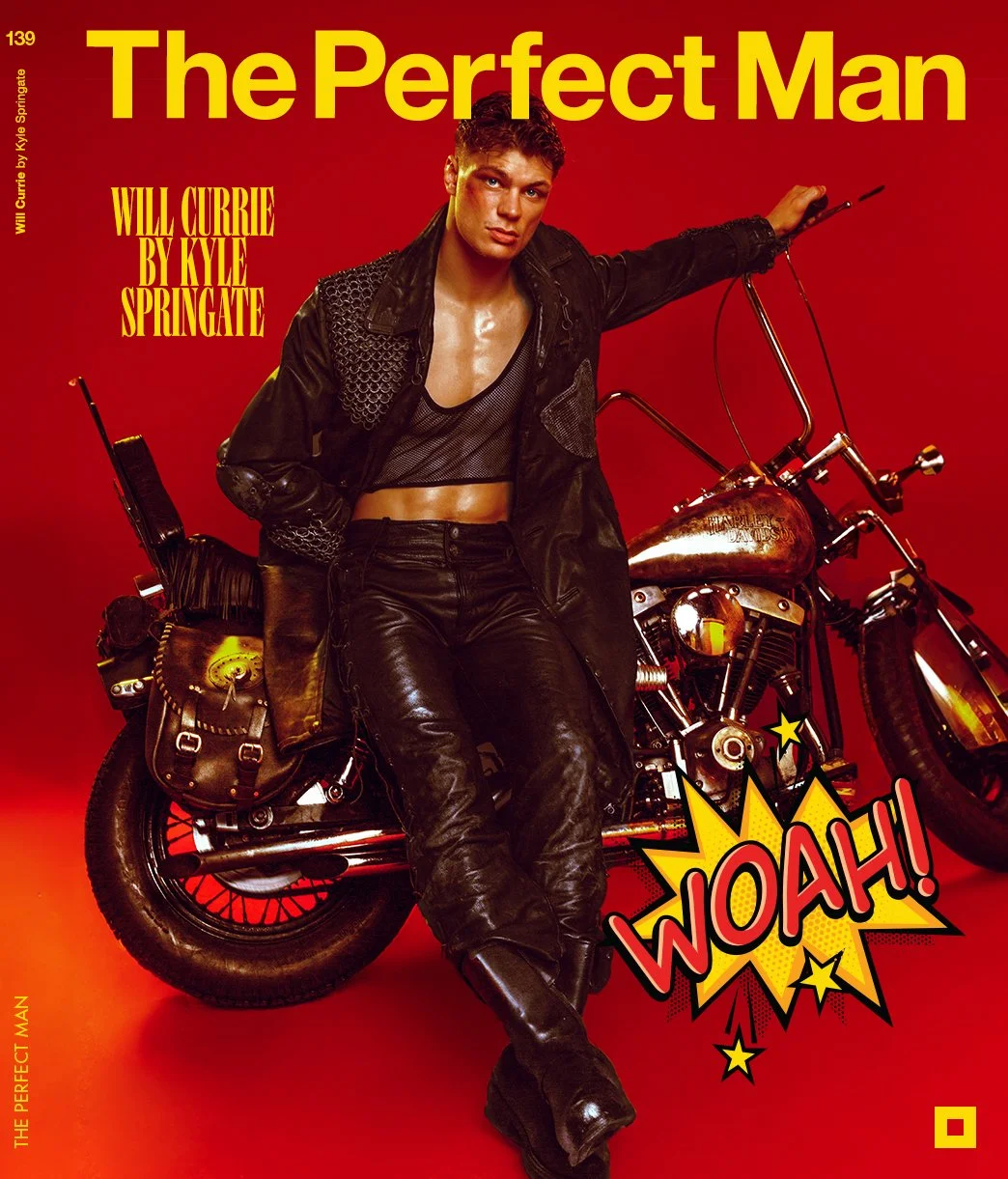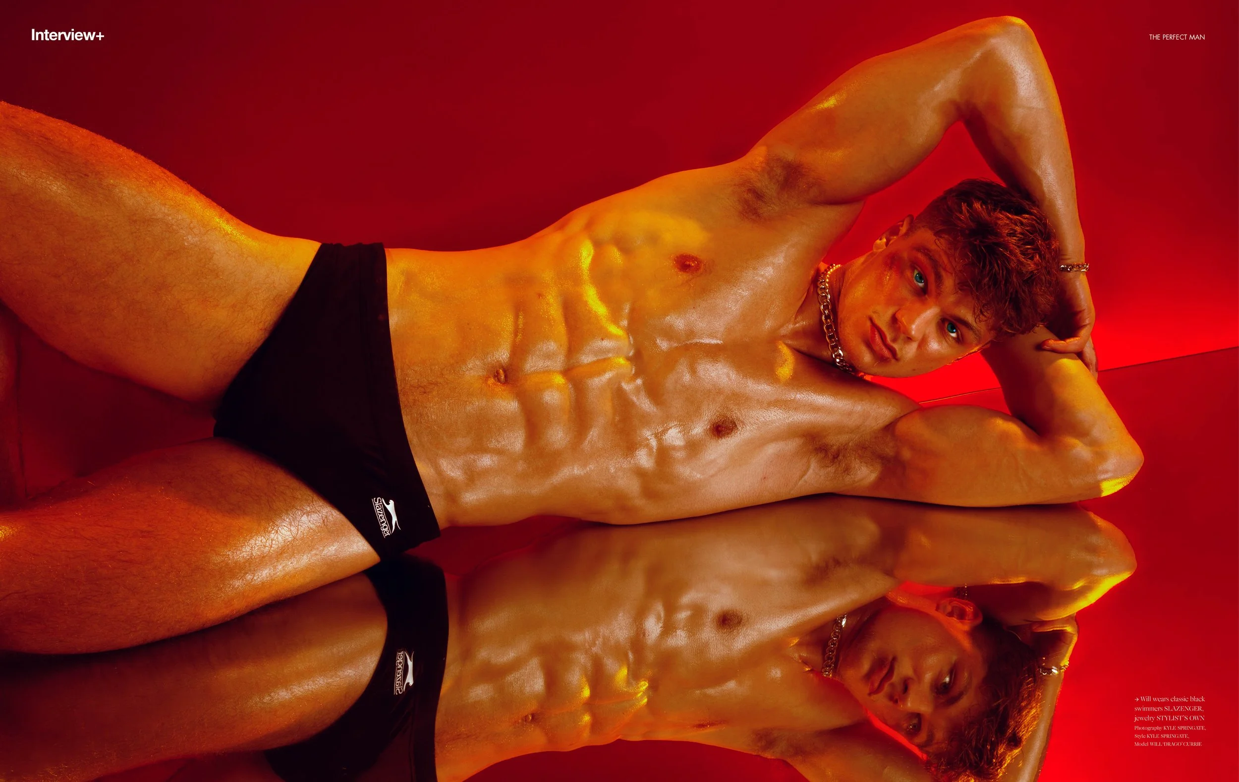 jeans vintage LEVI’S, fight gear LONSDALE 5-6. Will wears black swimmers SLAZENGER, jewelry STYLIST’S OWN 7-8. Will wears white swimmers DIESEL, belts VINTAGE 9-10. Will wears suede jacket and red leather motorcycle pants STYLIST’S OWN 11-12. Will wears classic black swimmers SLAZENGER, jewelry STYLIST’S OWN