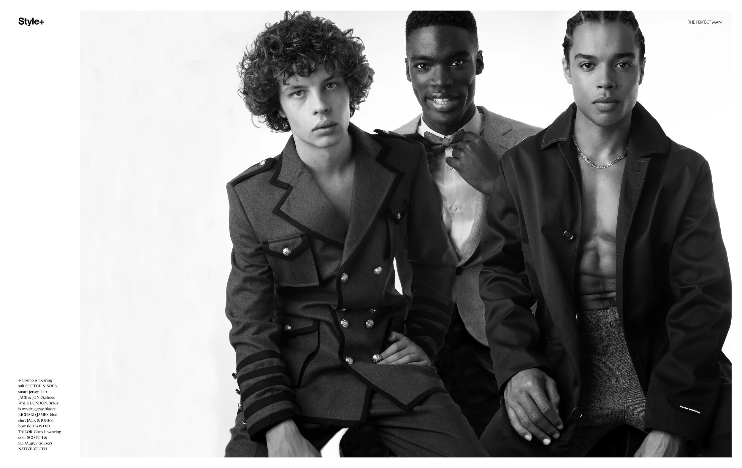 Photographs by KYLE SPRINGATE, Fashion by CALLUM SMITH assisted by CARMEL ANDERSON, Makeup by VIORELA at GARY REPRESENTS, Models TOM ALI and BRADY ASUMANG at STORM MODELS, COSMO WELLINGS and CHRISTIAN BOGAERT at NEVS MODELS, Shot at HLD STUDIOS London, England