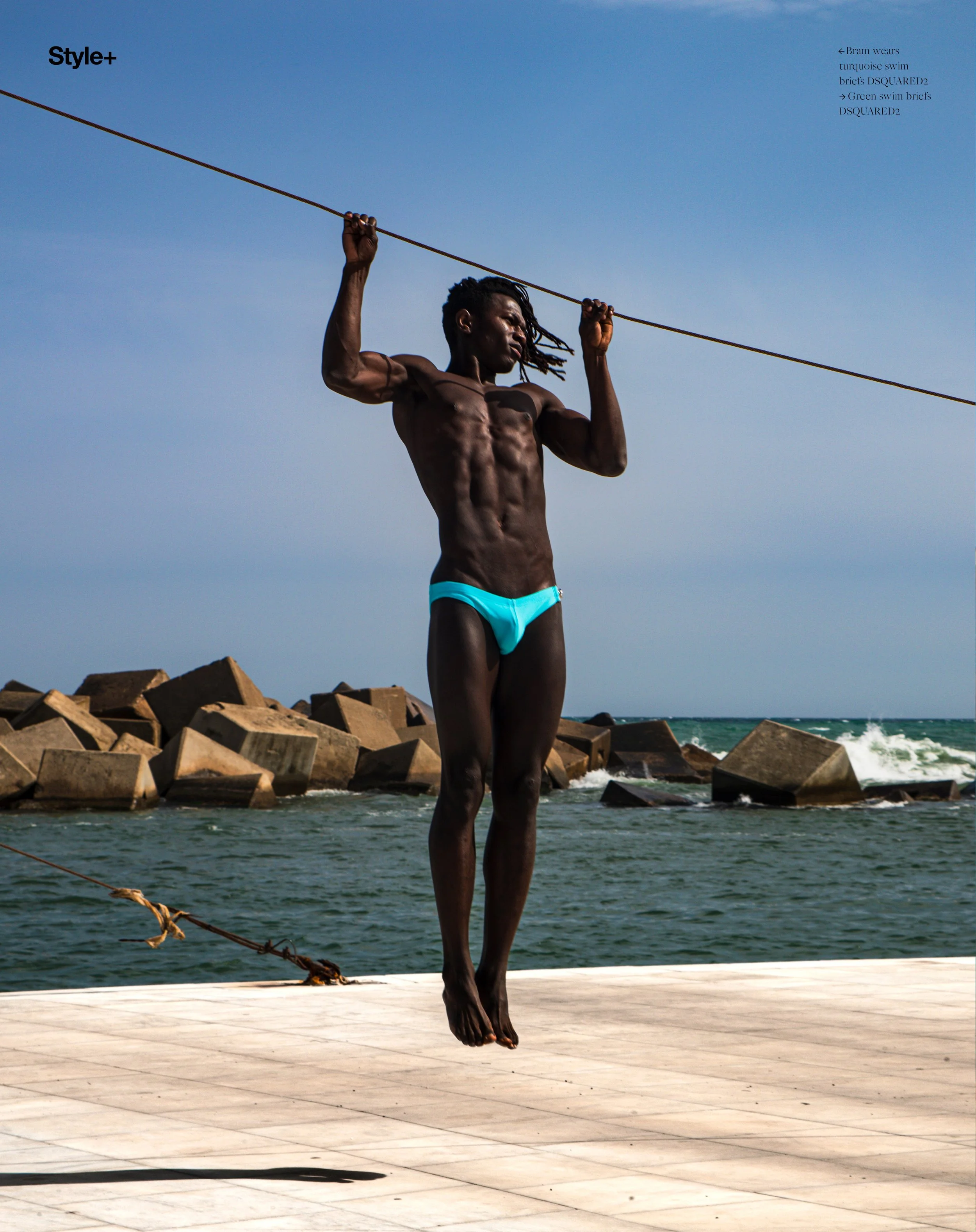1-2. Bram wears neon yellow swim briefs DOLCE & GABBANA 3-4. Bram wears crystal dress ARCA, Mesh tank top JUST CAVALLI, tan swim briefs VINTAGE 5-6. Bram wears turquoise swim briefs DSQUARED2, Green swim briefs DSQUARED2 7-8. Bram wears PEDRO DEL HIERO, swim briefs VINTAGE 9-10. Bram wears tan swim briefs VINTAGE