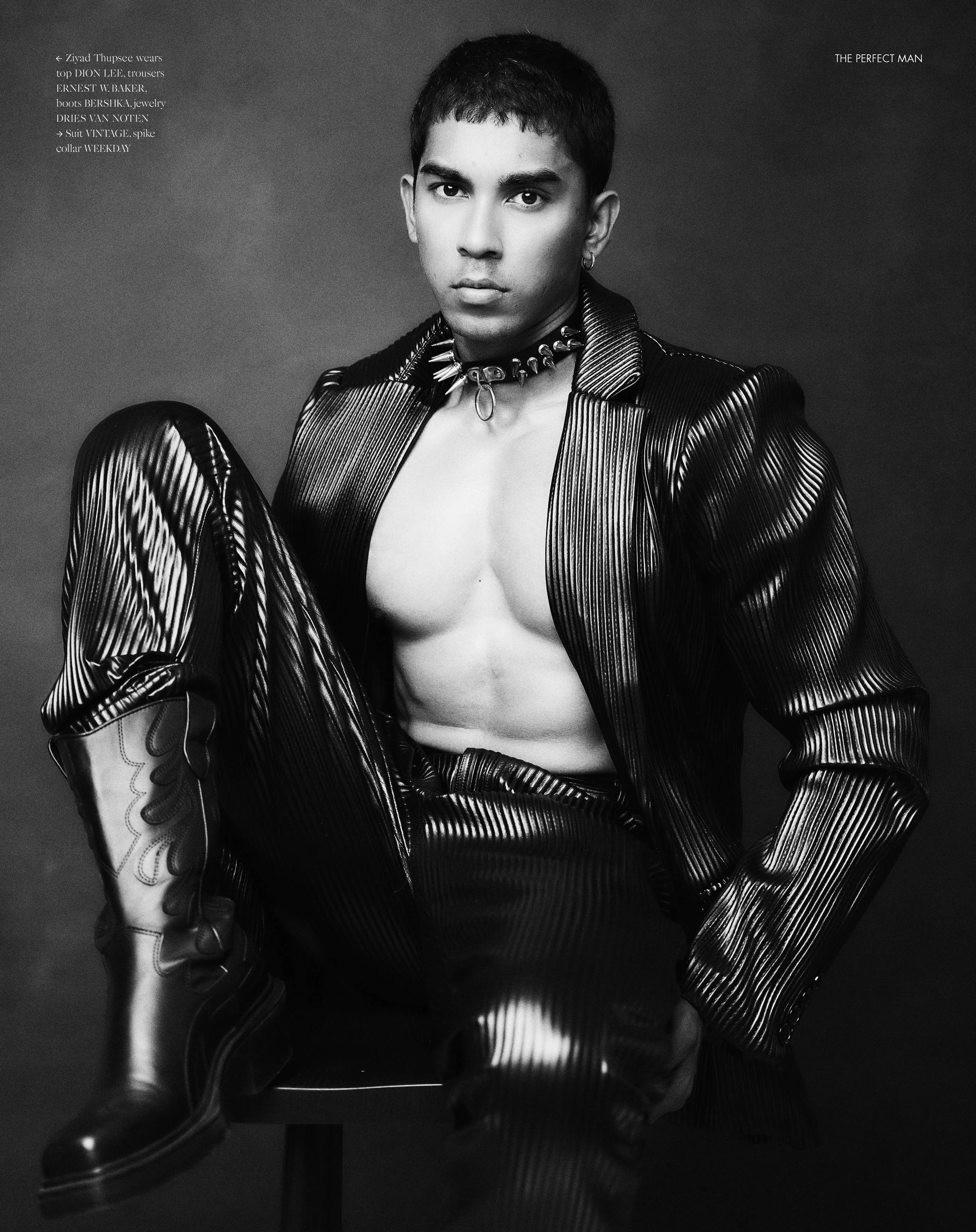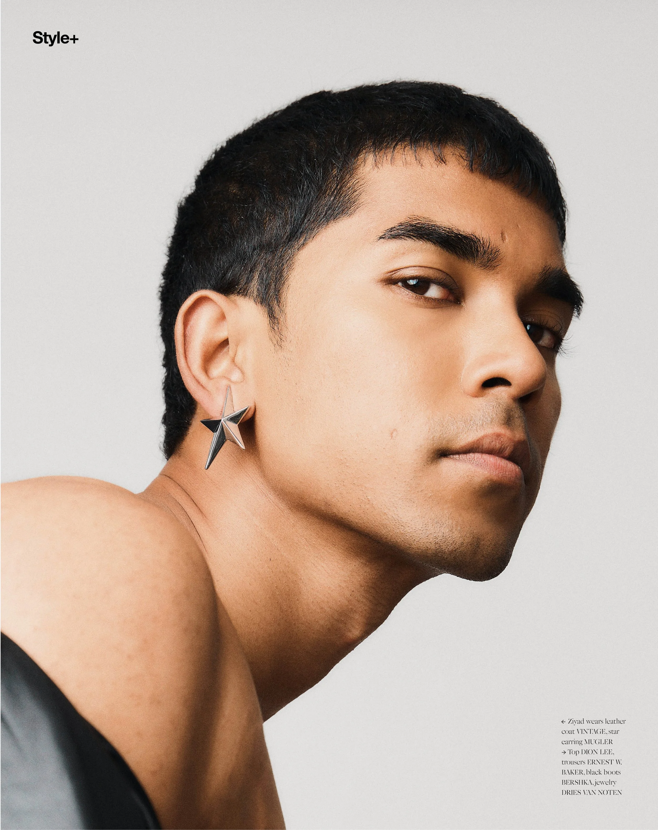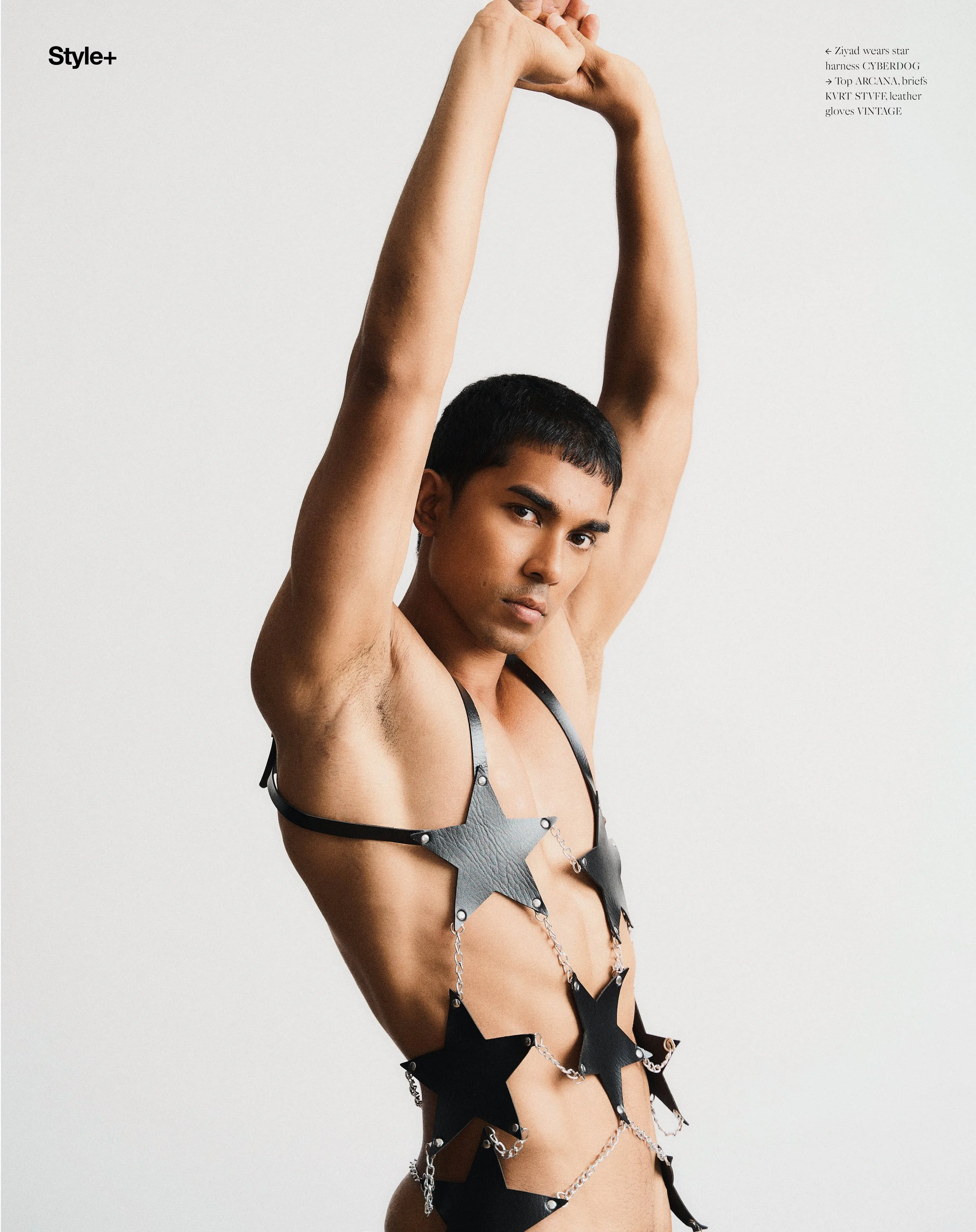 1-2. Ziyad Thupsee wears top DION LEE, trousers ERNEST W. BAKER, boots BERSHKA, jewelry DRIES VAN NOTEN, Suit VINTAGE, spike collar WEEKDAY 3-4. Ziyad wears star harness CYBERDOG, Top ARCANA, briefs KVRT STVFF, leather gloves VINTAGE 5-6. Ziyad wears leather coat LU’U DAN, shorts THEOPHILO, necklace NEIGHBORHOOD 7-8. Eyewear BALENCIAGA shorts VINTAGE, black leather boots BERSHKA 9-10. Ziyad wears leather coat VINTAGE, star earring MUGLER, Top DION LEE, trousers ERNEST W. BAKER, black boots BERSHKA, jewelry DRIES VAN NOTEN 11-12. Ziyad wears top DION LEE, trousers ERNEST W. BAKER, black boots BERSHKA, necklace and bracelet DRIES VAN NOTEN, Bag BALENCIAGA, leather hat VINTAGE 13-14. Ziyad wears suit VINTAGE, leather spike collar WEEKDAY, Coat VINTAGE, star earring MUGLER