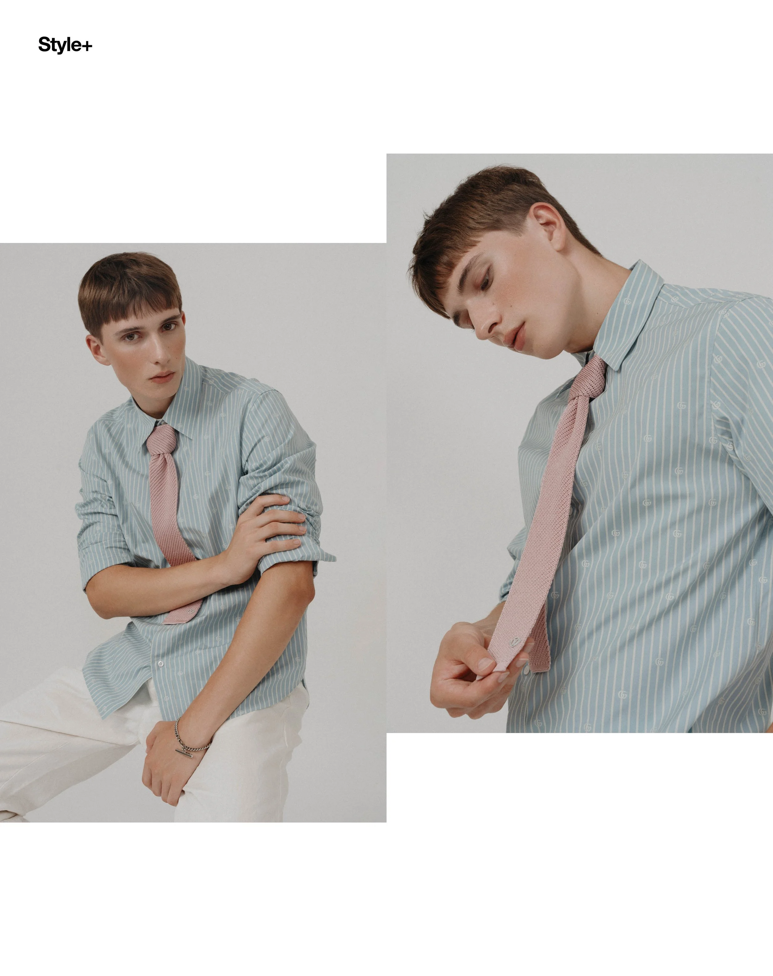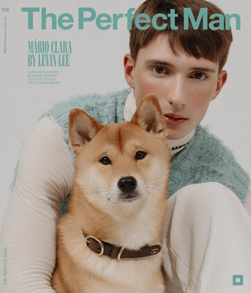 1-2. Mário Clara wears turtleneck sweater JIL SANDER, sweater vest ACNE STUDIOS, pants ORLEBAR BROWN 3-4. Mário wears textured pants WOOYOUNGMI, necklace VERSACE, hat JW ANDERSON, Cardigan NANUSHKA, pants WOOYOUNGMI, necklace PAUL SMITH 5-6. Mário wears knit sweater BOSS, shirt DRIES VAN NOTEN, pants ALEXANDER MCQUEEN, necktie LOUIS VUITTON, rings VERSACE, T-shirt DIOR, tan pants PATRIZIA PEPE, gold rings ALEXANDER MCQUEEN 7-8. Mário wears stripe shirt GUCCI, pants ORLEBAR BROWN, necktie LOUIS VUITTON, bracelet PAUL SMITH, Shirt ZEGNA, undershirt LOEWE, shorts BALENCIAGA, dog wears neckerchief PRADA 9-10. Mário wears knit sweater BOSS, stripe shirt DRIES VAN NOTEN, pants ALEXANDER MCQUEEN, necktie LOUIS VUITTON, rings VERSACE, Shirt FENDI, pants PATRICIA PEPE, necktie GUCCI