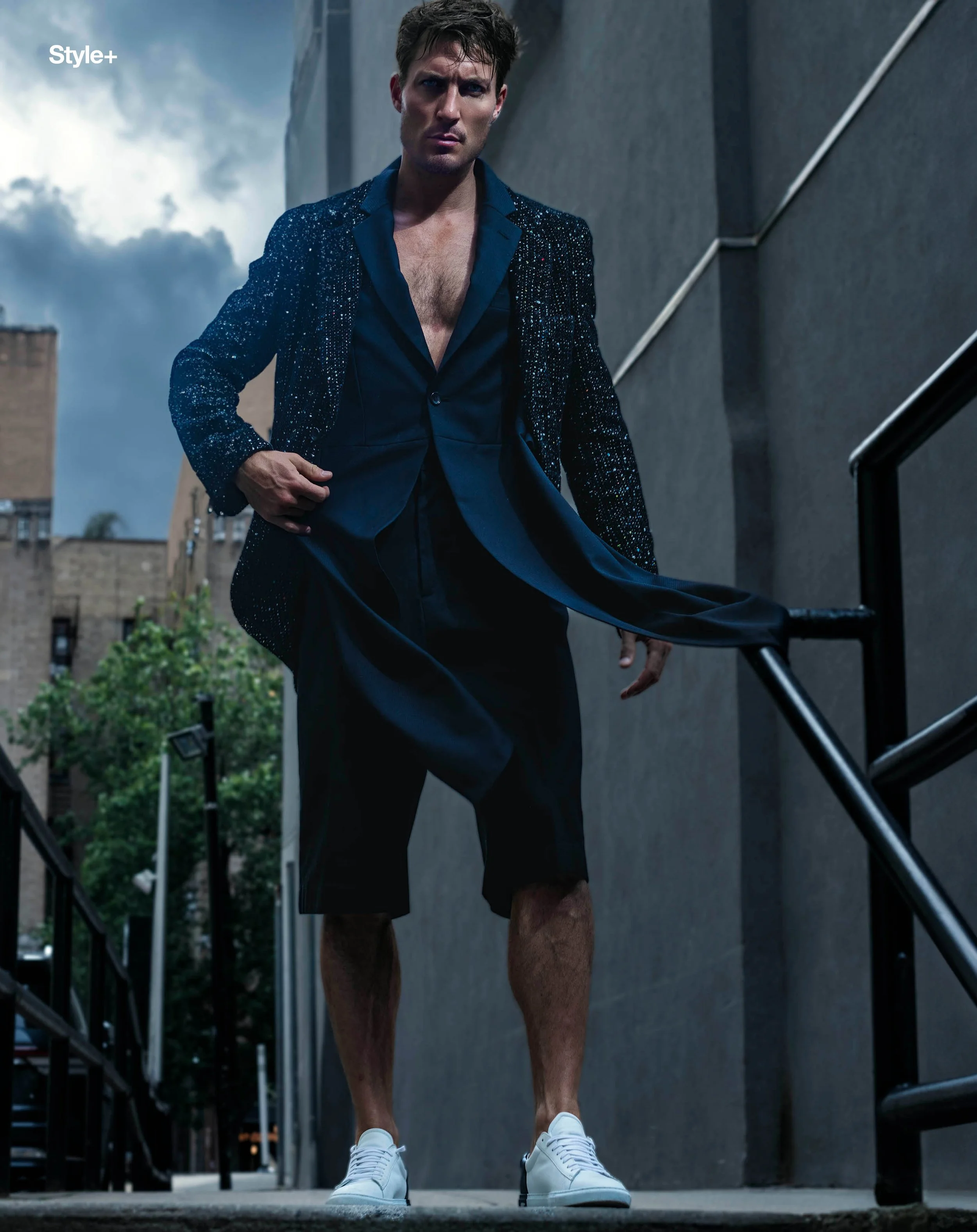 1-2. Bobby Penney wears black sweater JUUN. J, grey shorts BOTTEGA VENETA, white shoes OLIVER CABELL, Black leather harness VIVIENNE WESTWOOD, white shorts ALEXANDER MCQUEEN, shoes OLIVER CABELL 3-4. Bobby wears black rhinestone blazer COMME DES GARÇONS, navy jacket CELINE, black shorts ALEXANDER MCQUEEN, shoes OLIVER CABELL, Black rhinestone blazer COMME DES GARÇONS, navy jacket CELINE 5-6. Bobby wears navy jacket CELINE, black shorts ALEXANDER MCQUEEN, shoes OLIVER CABELL, Black blazer BALMAIN, chain harness VIVIENNE WESTWOOD, black shorts PHILIP LIM, white shoes OLIVER CABELL 7-8. Bobby wears knit cream colored tanktop CASABLANCA, cream colored pants GUCCI, white shoes OLIVER CABELL, White pants with gold detail BALMAIN, white shoes OLIVER CABELL 9-10. Bobby wears black sweater JUUN. J, grey shorts BOTTEGA VENETA, white shoes OLIVER CABELL, Pink blazer TOM FORD, sheer top DOLCE & GABBANA, black shorts PHILIP LIM, white shoes OLIVER CABELL