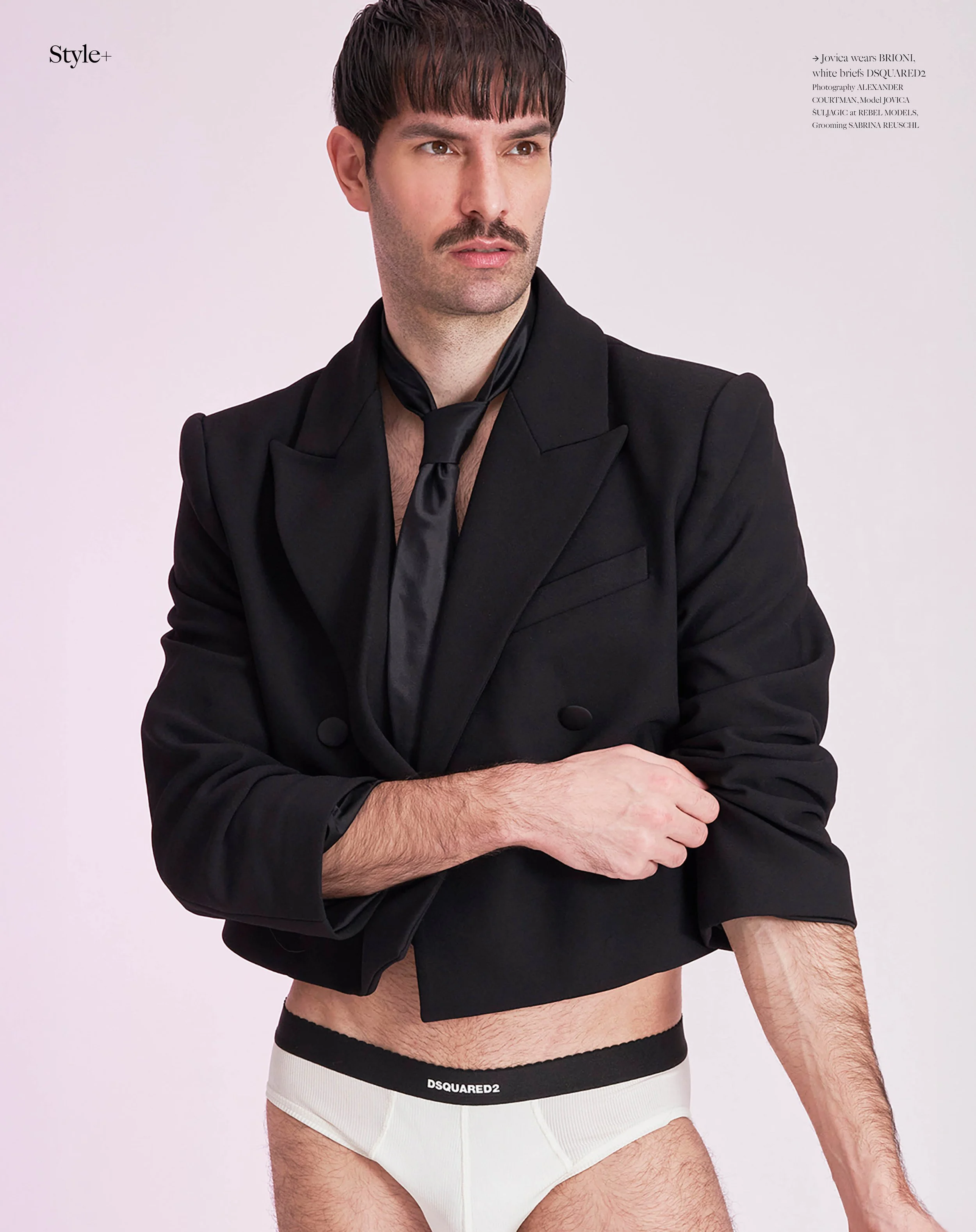 1-4. Jovica Suljagic wears sequin shirt and pants DOLCE & GABBANA, boots CALVIN KLEIN, Jovica wears BRIONI, Tanktop SCHIESSER, dungarees MOSCHINO 5-8. Jovica wears cardigan HENNES & MAURITZ, bries DSQUARED2, boots CALVIN KLEIN, Overall ASOS, vintage scarf STYLIST’S OWN, Jovica wears white briefs DSQUARED2, sweatshirt HENNES & MAURITZ 9-12. Tanktop TOM FORD, blue jeans DIESEL, woven belt BRUNELLO CUCINELLI 13-14. Jovica wears BRIONI, white briefs DSQUARED2