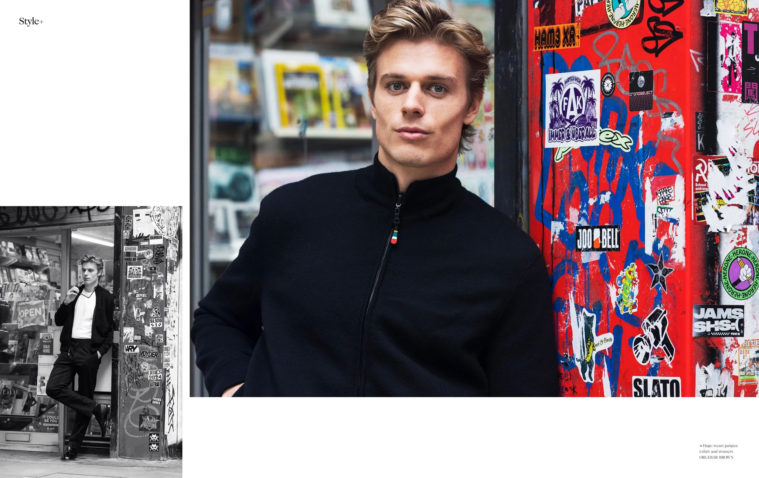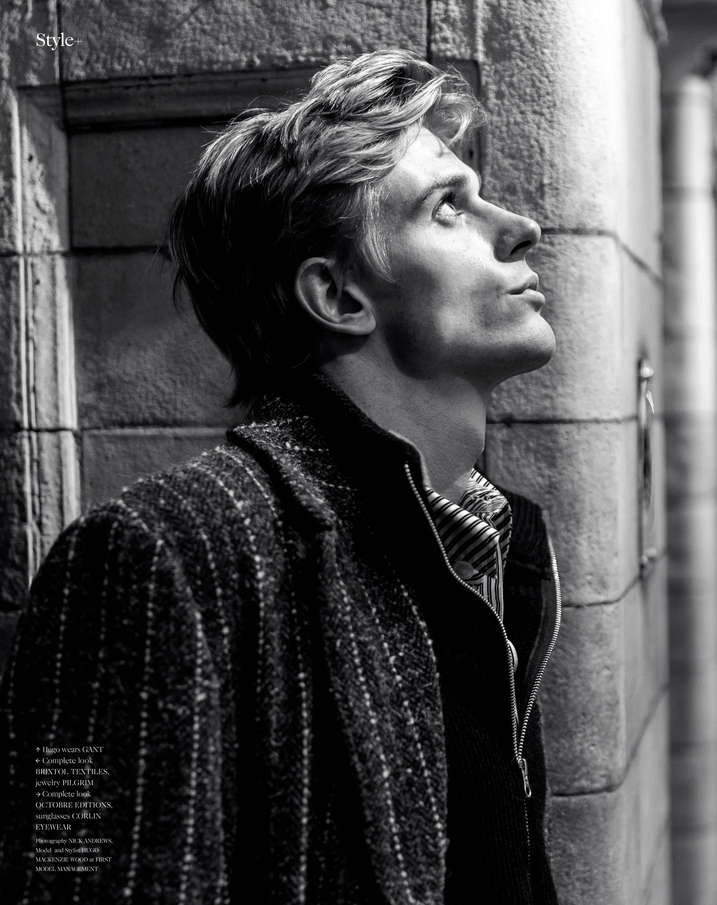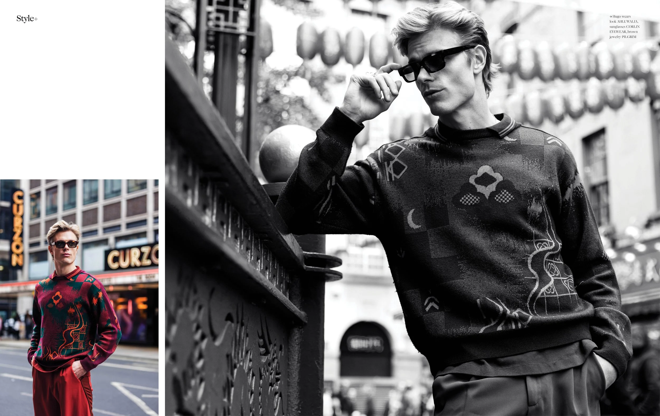 1-2. Hugo MacKenzie- Wood wears turtleneck, suit and burgundy scarf OCTOBRE EDITIONS, Complete look OCTOBRE EDITIONS, sunglasses CORLIN EYEWEAR, brown loafers SCAROSSO 3-4. Hugo wears jumper, t-shirt and trousers ORLEBAR BROWN, Pink coat, suit, shirt and tie FURSAC 5-6. Hugo wears look A DAYS MARCH, hat MOTEL MARGARITA, Black + White loafer DUKE AND DEXTE 7-8. Hugo wears look OCTOBRE EDITIONS, sunglasses CORLIN EYEWEAR, brown loafers SCAROSSO 9-10. Hugo wears look A DAYS MARCH, hat MOTEL MARGARITA, Black + White loafer DUKE AND DEXTE, Complete look OCTOBRE EDITIONS,  sunglasses CORLIN EYEWEAR, brown loafers SCAROSSO 11-12. Hugo wears look AHLUWALIA, sunglasses CORLIN EYEWEAR, brown jewelry PILGRIM 13-14. Hugo wears complete look POAN, watch CARL PIQUE 15-16. Hugo wears jumper, t-shirt and trousers