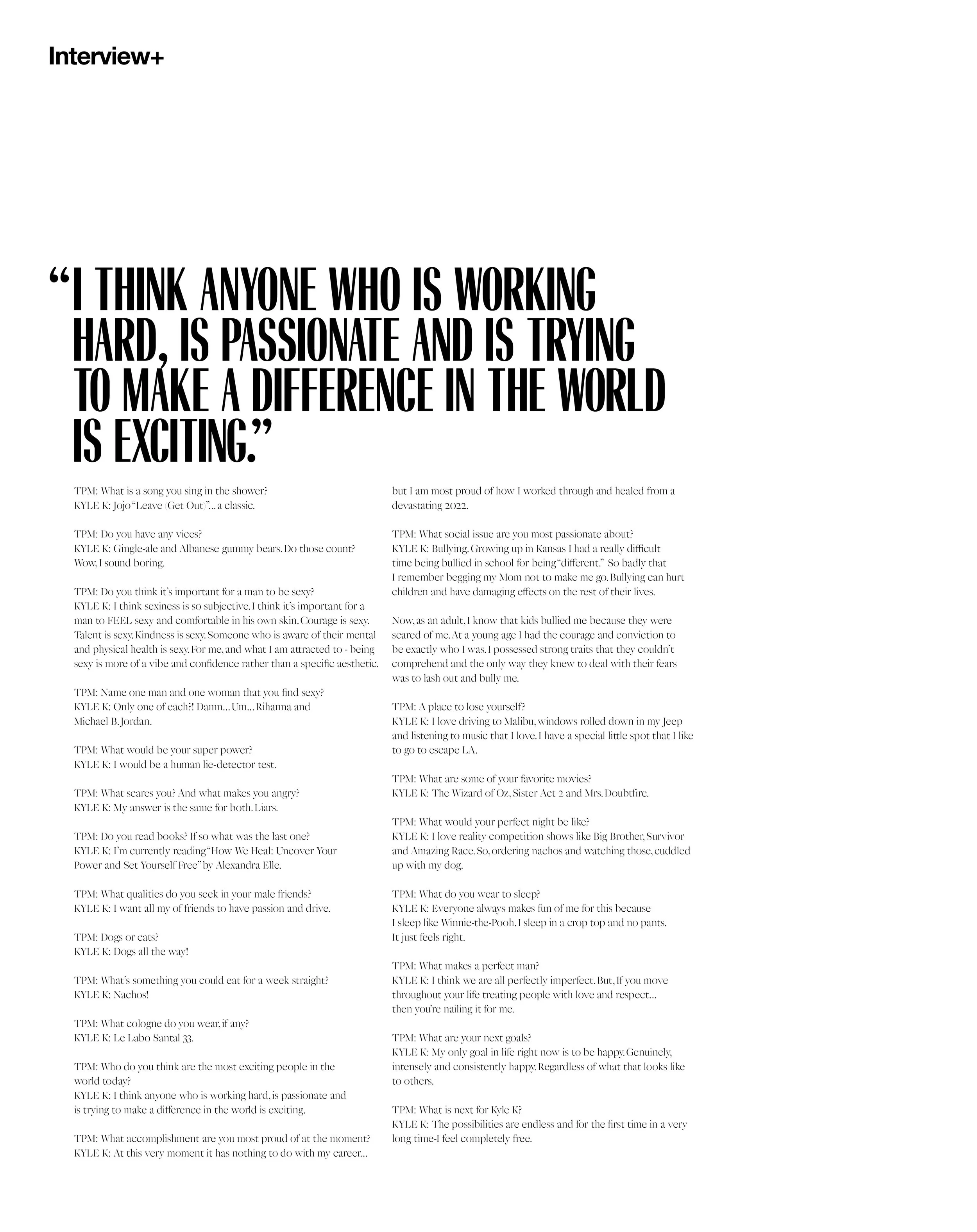 I think sexiness is so subjective. I think it’s important for a man to FEEL sexy and comfortable in his own skin. Courage is sexy. Talent is sexy. Kindness is sexy. Someone who is aware of their mental and physical health is sexy. For me, and what I am attracted to - being sexy is more of a vibe and confidence rather than a specific aesthetic.