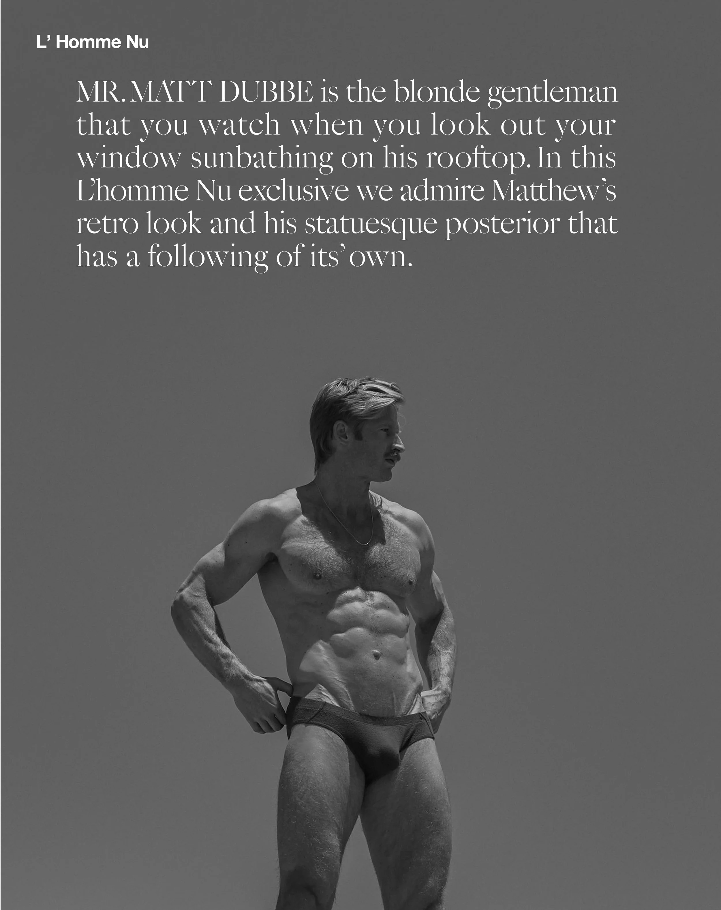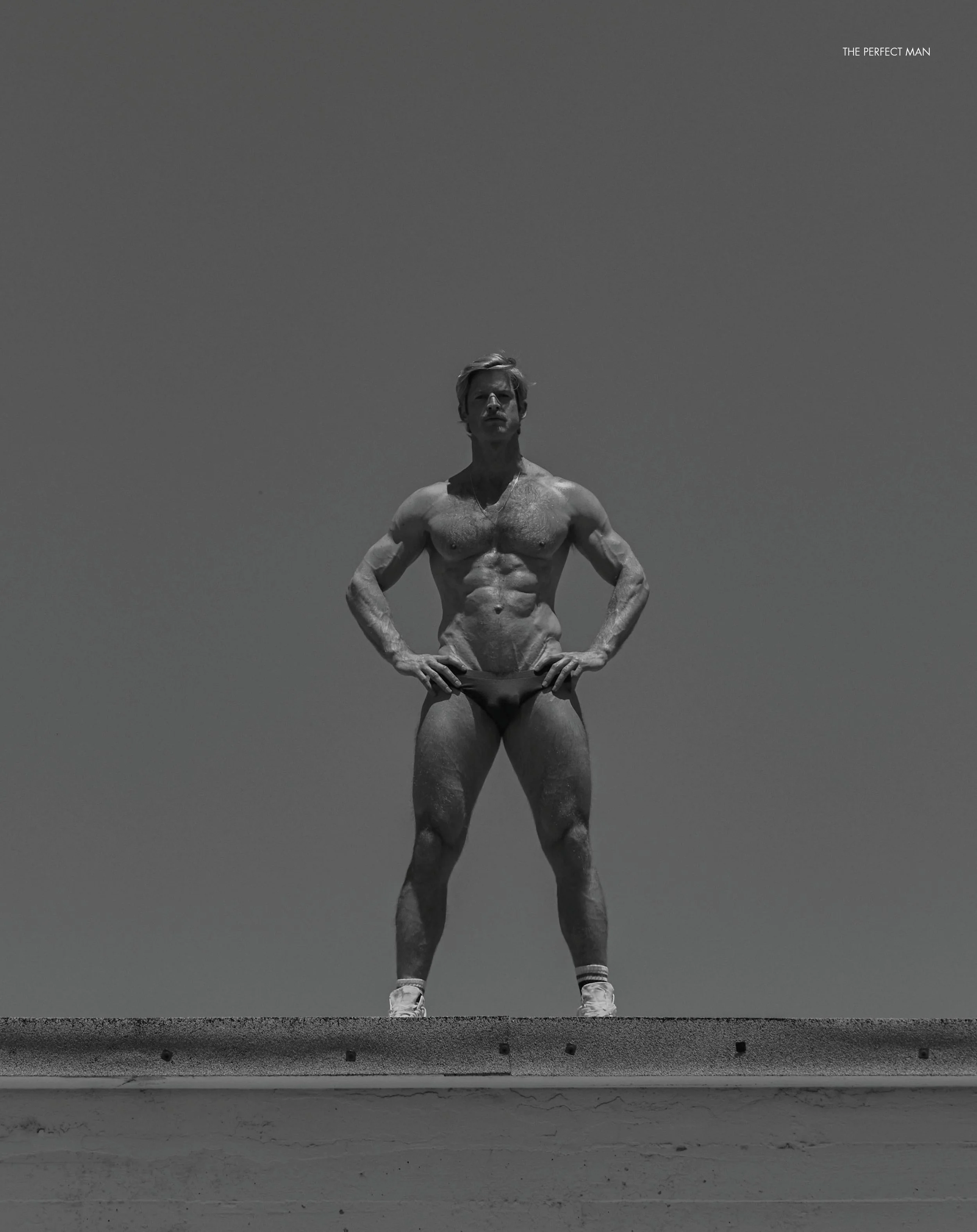 1-12. Matthew Dubbe wears black knit bikini briefs CHARLIE, On Hair: Matte paste BALMAIN HAIRCARE, On Body: The Gradual Illuminating Tanning Lotion TAN-LUXE