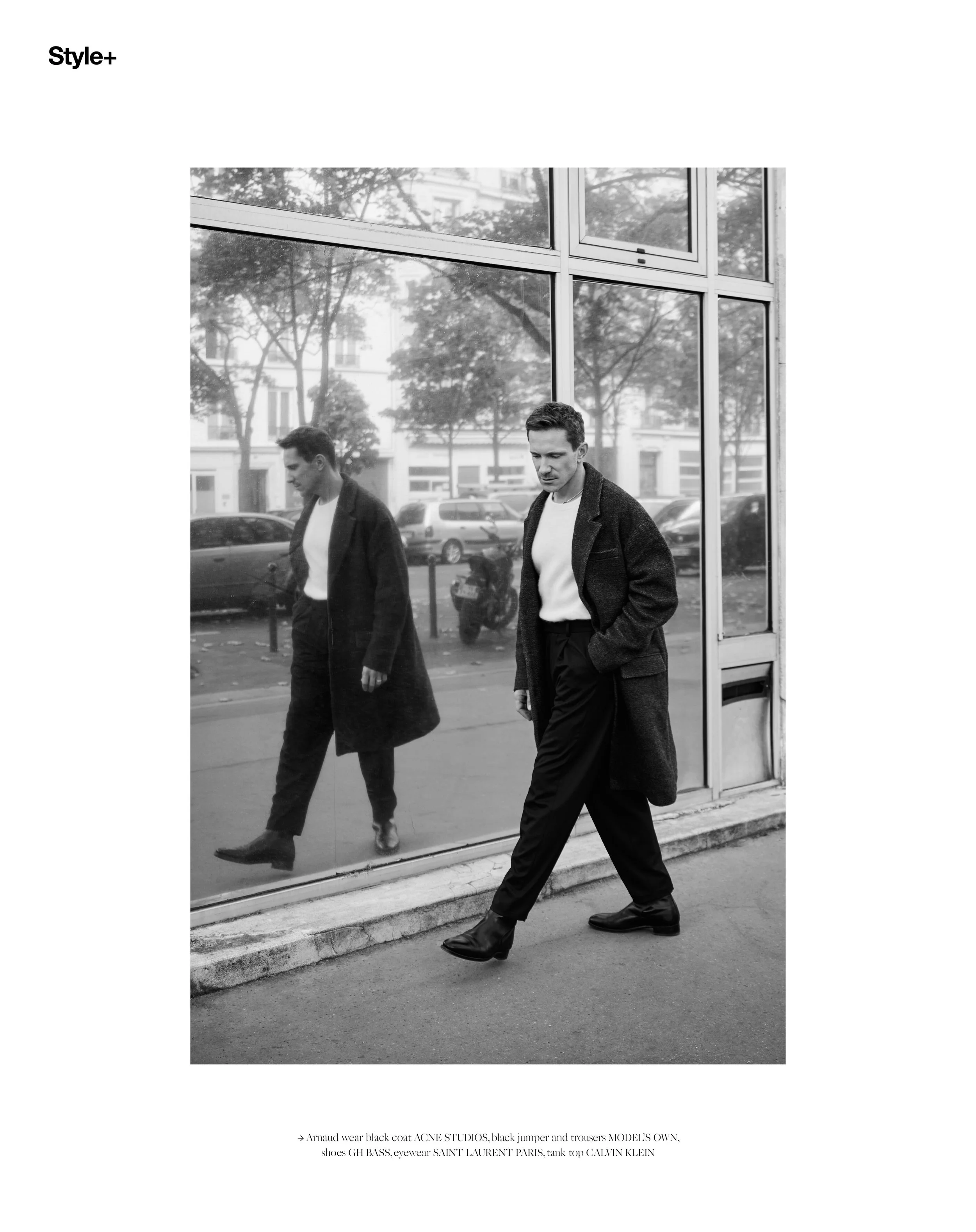 1-2. Arnaud wear black coat ACNE STUDIOS, sweater and trousers MODEL’S OWN, shoes GH BASS 3-4. Arnaud wear black sweater MODEL’S OWN, briefs CALVIN KLEIN, Pinstripe boxer shorts MODEL’S OWN 5-6. Arnaud wears white tank top and classic boxer shorts CALVIN KLEIN, White tank top CALVIN KLEIN 7-8. Arnaud wears blue suit SANDRO, derby shoes AMI 9-10. Arnaud wear black coat ACNE STUDIOS, black sweater and trousers MODEL’S OWN, shoes GH BASS, eyewear SAINT LAURENT PARIS 11-12. Arnaud wears white sweater ÉRIC BOMPARD, trousers MODEL’S OWN, Grey coat ISABEL MARANT 13-14. Arnaud wears suit SANDRO 15-16. Arnaud wear black coat ACNE STUDIOS, black jumper and trousers MODEL’S OWN, shoes GH BASS, eyewear SAINT LAURENT PARIS, tank top CALVIN KLEIN
