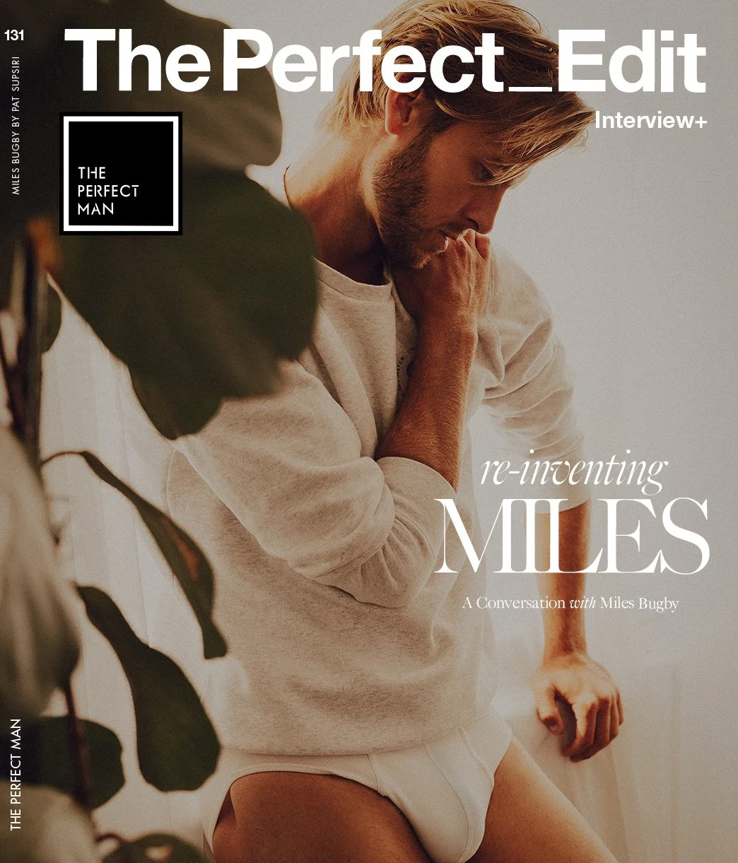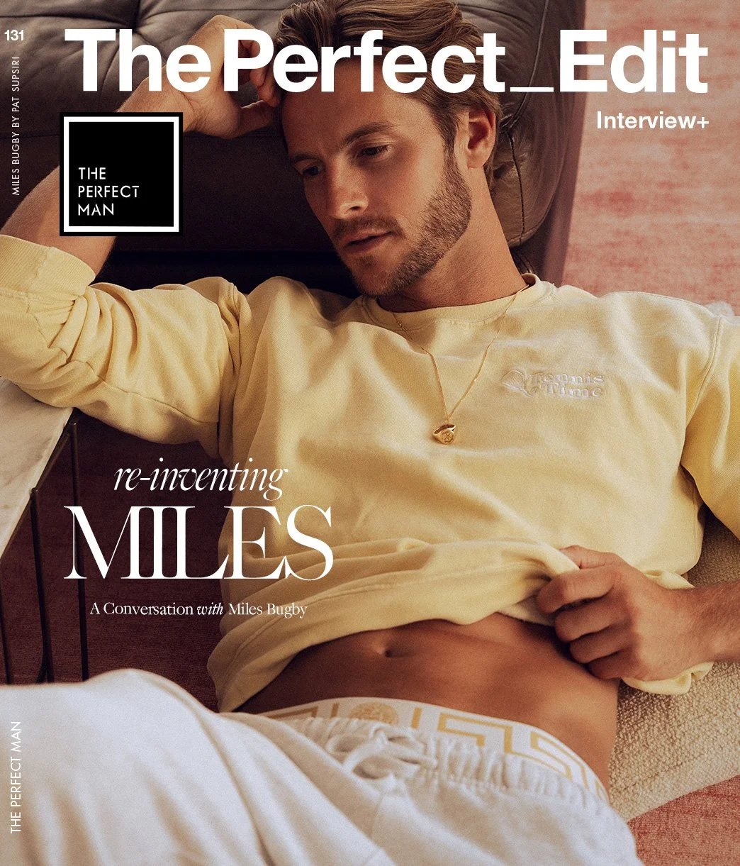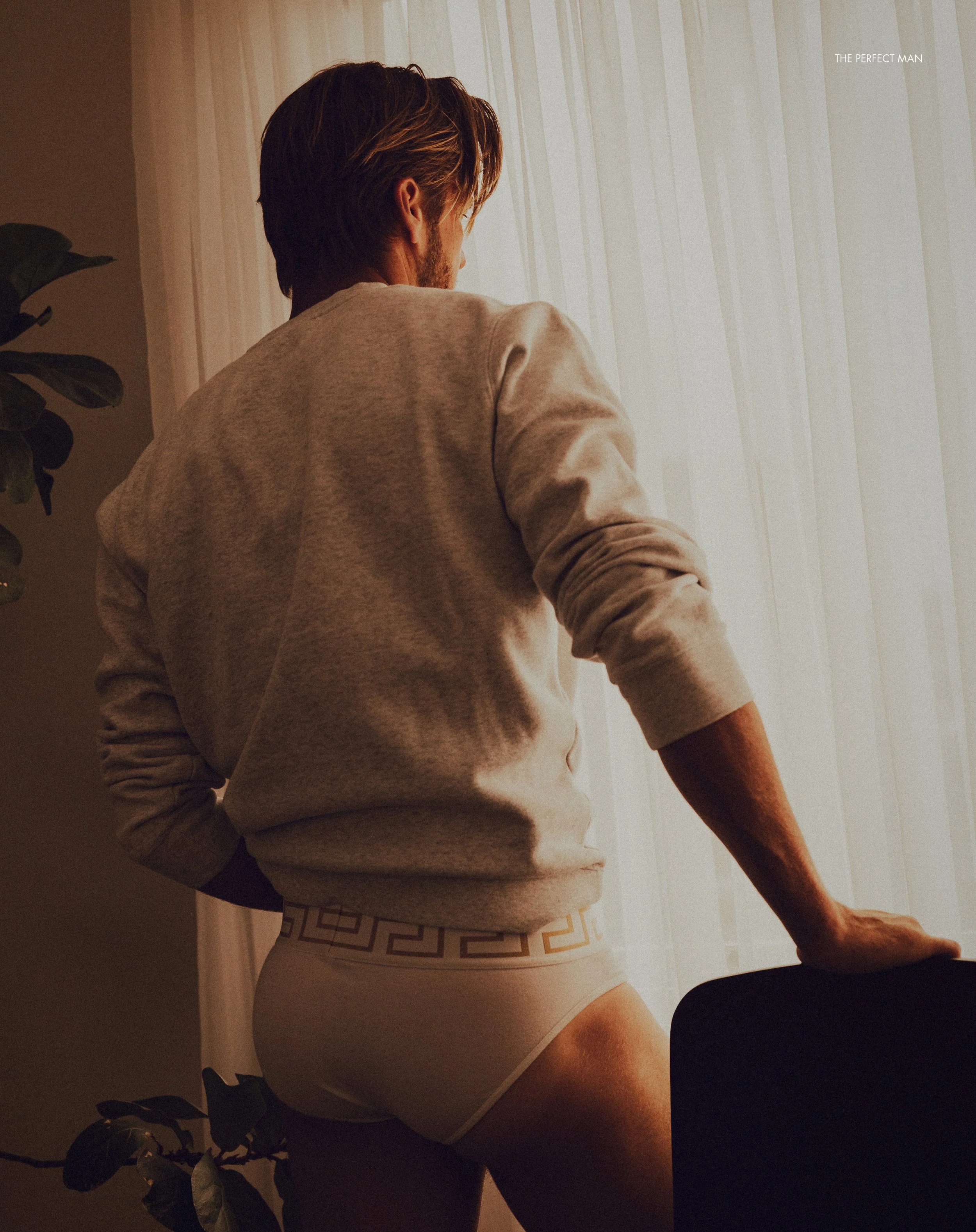 1-4. Miles Bugby wears short sleeve shirt AERE and jeans LEE, white classic Greca briefs VERSACE  5-7. Miles wears chain MODEL’S OWN,  white Greca briefs VERSACE  8-9. Miles wears track pants TENNIS TIME and white Greca briefs VERSACE. Gray sweater TENNIS TIME, white Greca briefs VERSACE  9-10. Miles wears pastel yellow sweater and gray track pants TENNIS TIME and white Greca briefs VERSACE  10-11. Miles wears gray sweater TENNIS TIME, white Greca briefs VERSACE 11-12. Miles wears gray sweater TENNIS TIME, white Greca briefs VERSACE, Gold necklace MODEL’S OWN, On hair: Airstyle Flexible Finish cream ORIBE