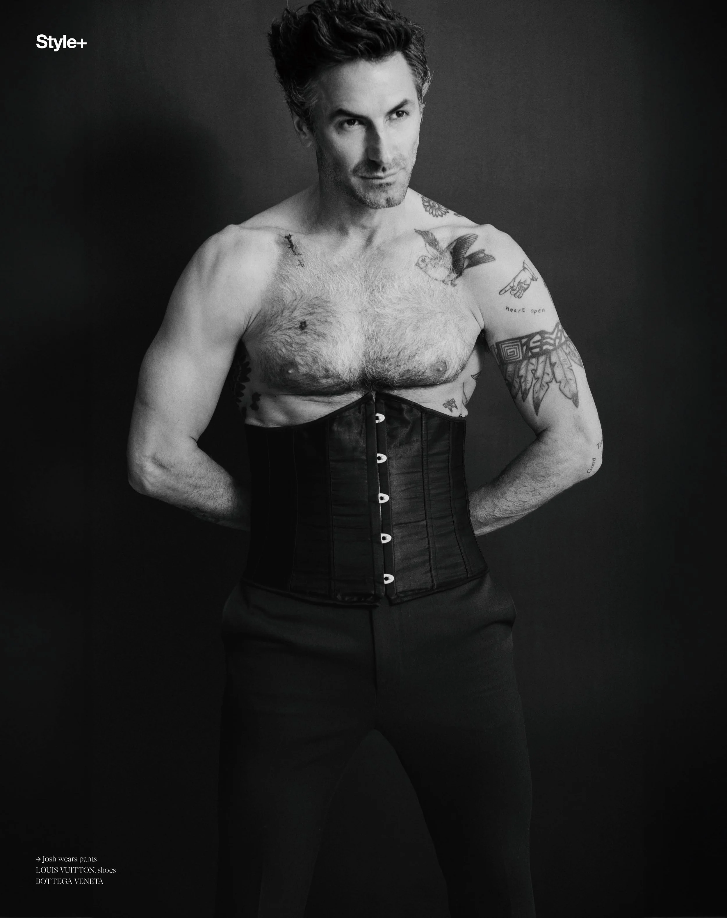 1-4. Josh wears leather shorts ISABEL MARANT, shirt MARNI, black jacket RAF SIMONS 5-6. Josh wears pants LOUIS VUITTON, shoes BOTTEGA VENETA 7-8. Josh wears coat GUCCI, shirt LORO PIANA, black pants LOUIS VUITTON 9-10. Josh wears shirt and pants LOUIS VUITTON, shoes PRADA, jacket GUCCI, Leather shorts ISABEL MARANT, black knit jumper BOTTEGA VENETA 11-12. Josh wears pants LOUIS VUITTON, shoes BOTTEGA VENETA 13-14. Josh wears Red Mickey Mouse X Gucci cardigan GUCCI, Pants LOUIS VUITTON, belt DSQUARED2, white boxer trunks HANRO