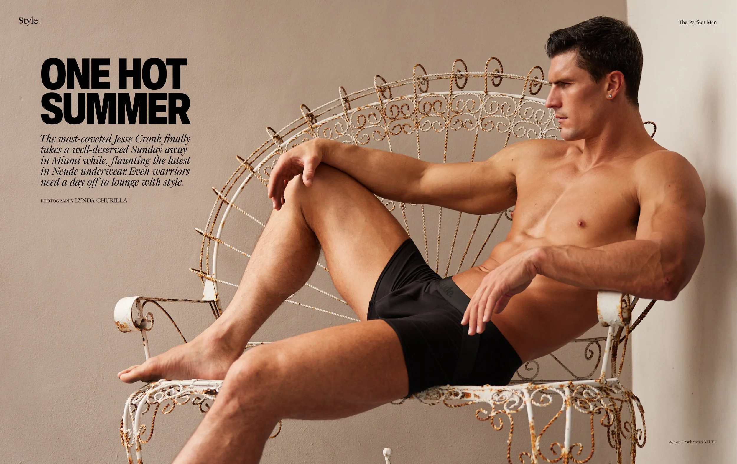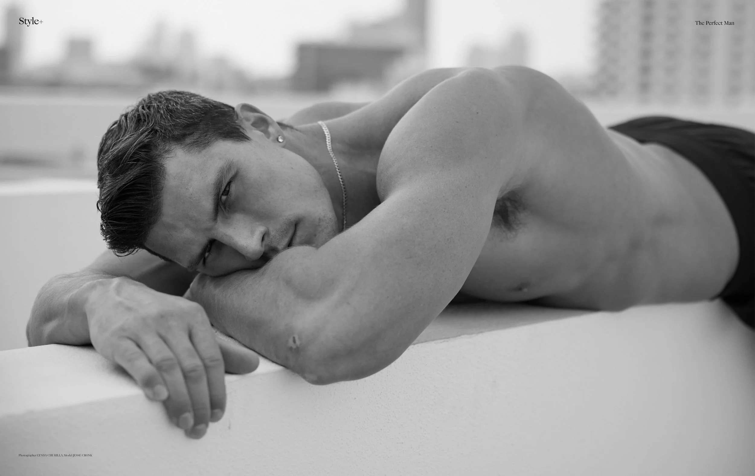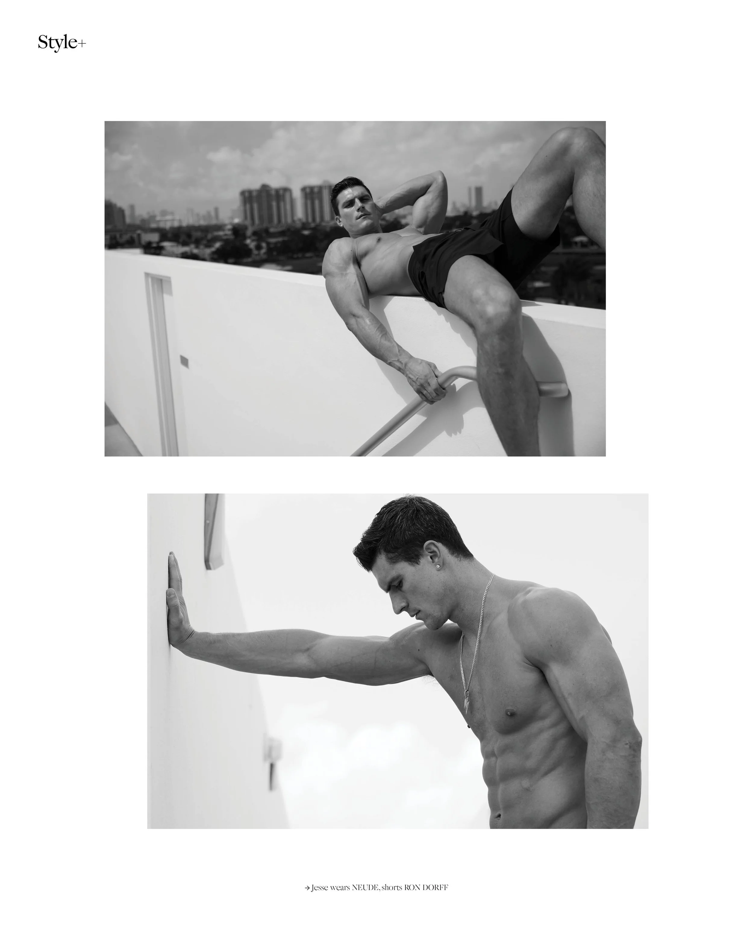 1-2. Jesse Cronk wears NEUDE 3-4. Jesse wears NEUDE, shorts RON DORFF 5-8. Jesse wears NEUDE 9-16. Jesse wears NEUDE,  On Body: Eros Eau De Parfum VERSACE