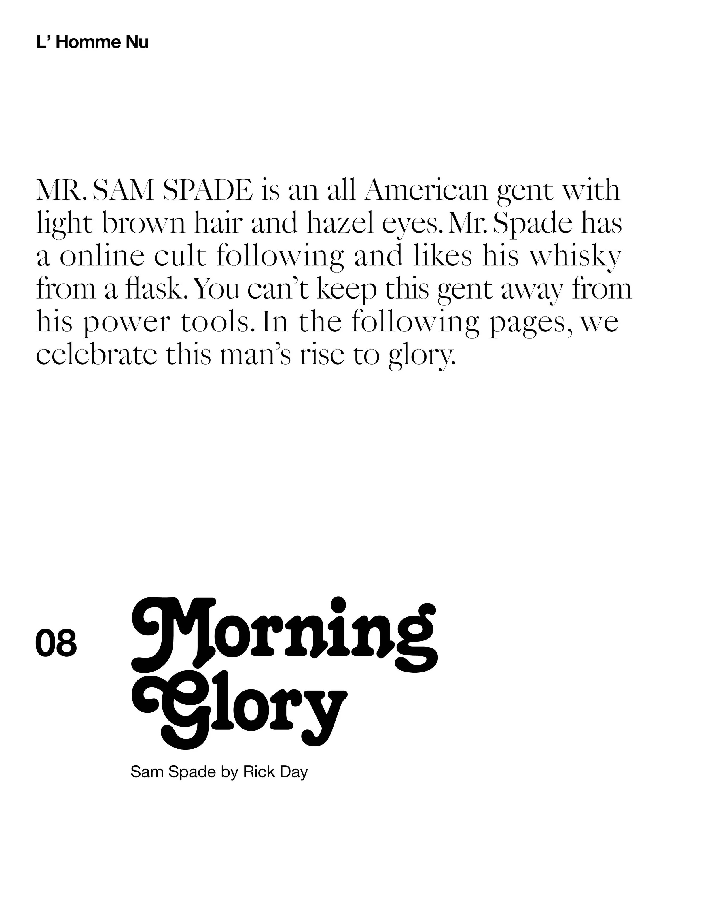 Photographs by RICK DAY, Model SAM SPADE