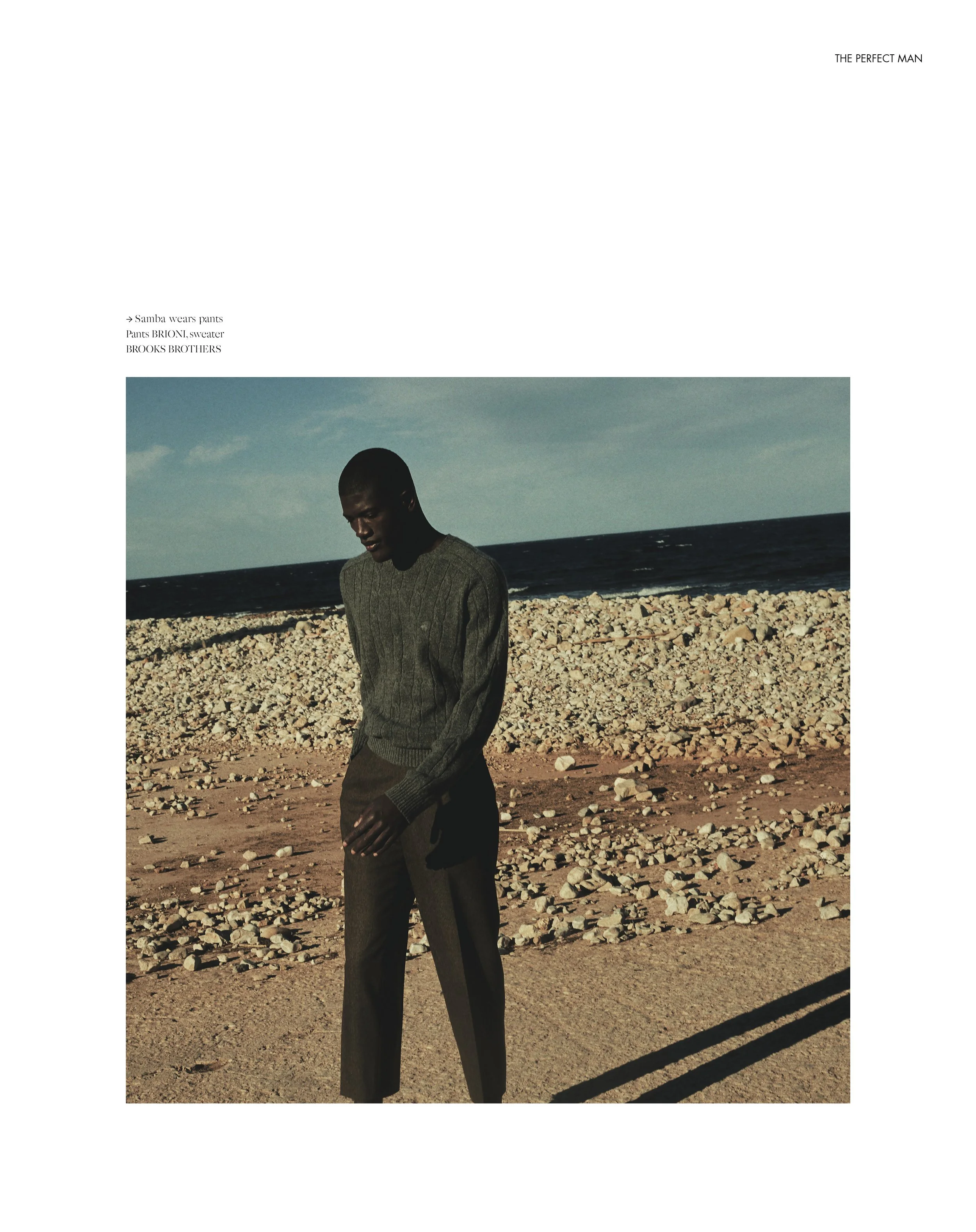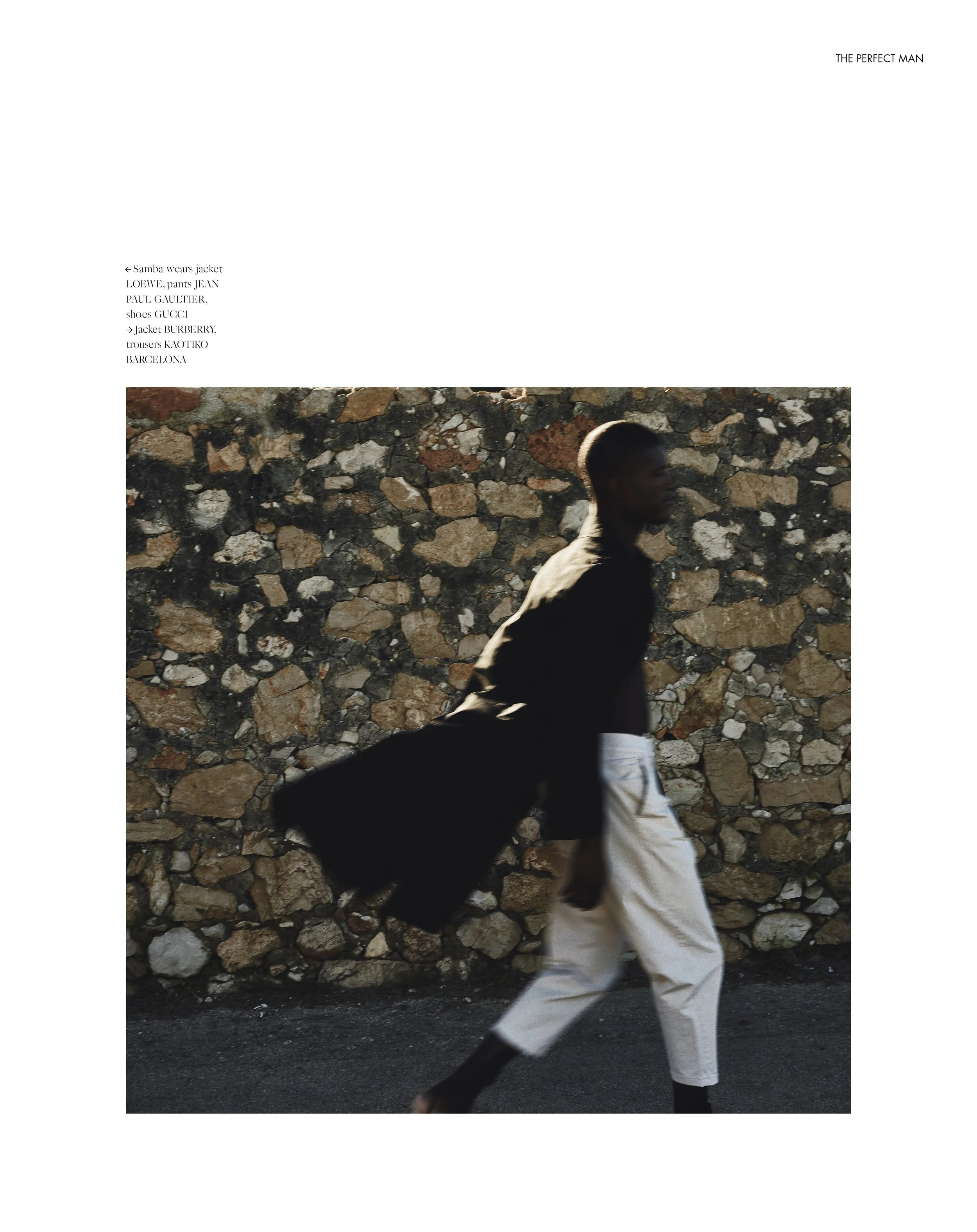 1-2. Samba wears jacket LOEWE, pants JEAN PAUL GAULTIER, shoes GUCCI, Jacket BURBERRY, trousers KAOTIKO BARCELONA  3-4. Samba wears jacket PRADA, trousers KAOTIKO BARCELONA 5-6. Samba wears jacket BURBERRY, trousers CHLOE 7-8. Samba wears jacket HERMES, sweater in camel BURBERRY, trousers GUCCI 9-10. Samba wears pants Pants BRIONI, sweater BROOKS BROTHERS 11-12. Samba wears jacket HERMES, sweater in camel BURBERRY, trousers GUCCI