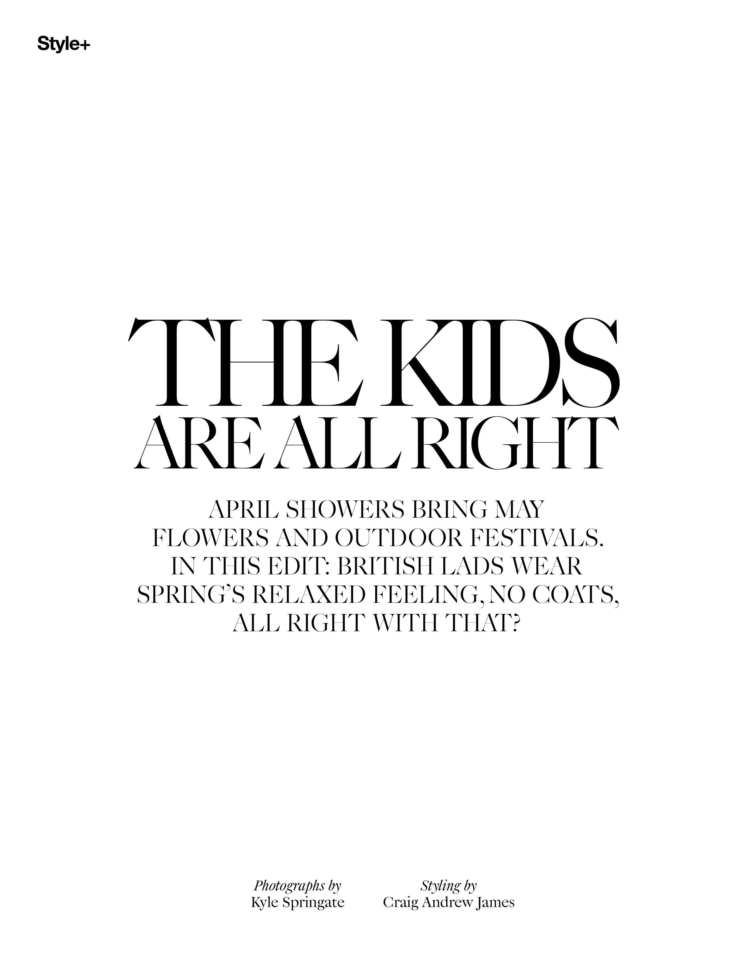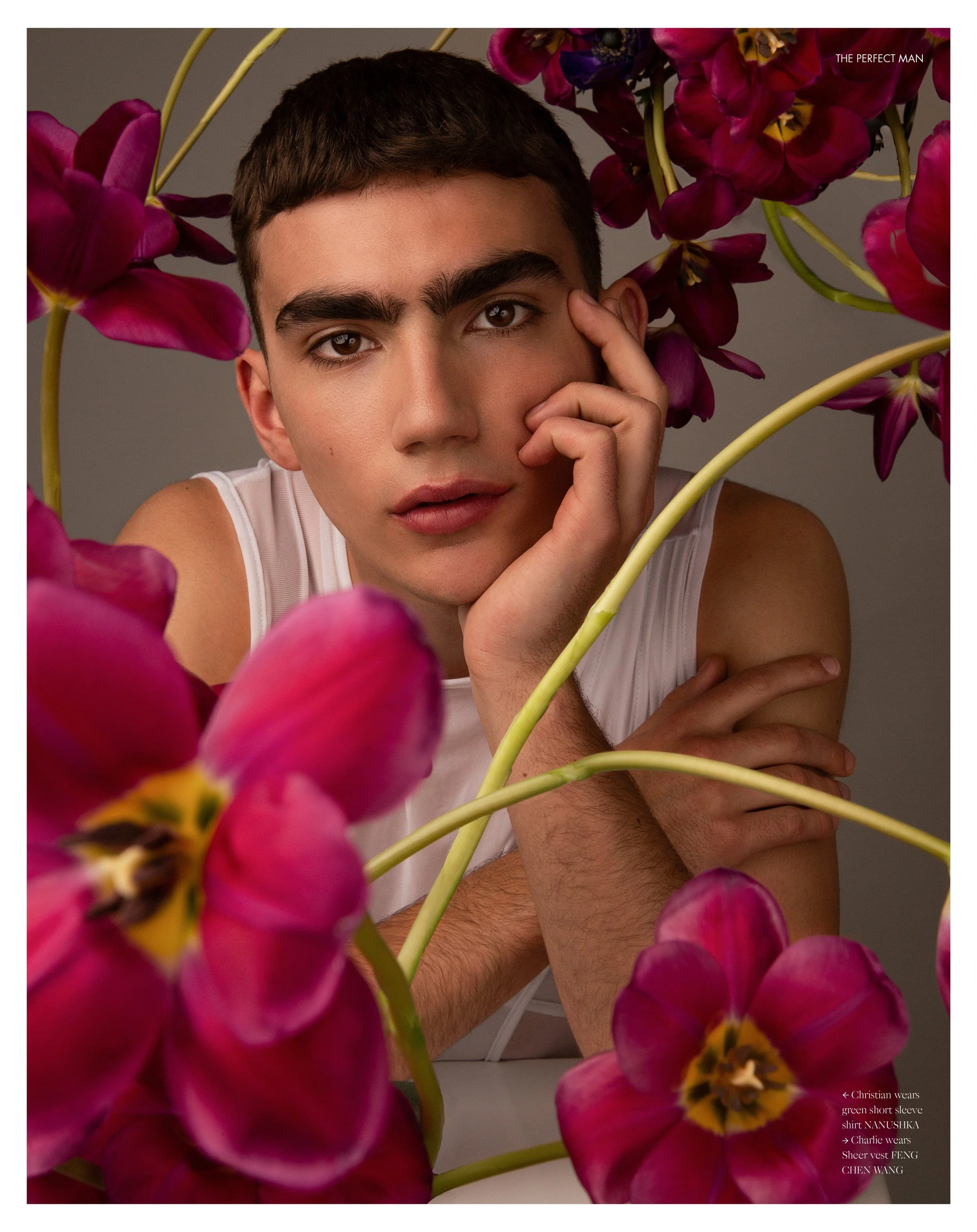 Photographs by KYLE SPRINGATE, Makeup VIORELA COMAN, Stylist CRAIG ANDREW JAMES, Assistants SABRINA and ARIANA COLE, Models HARRY SKINNER, ELIS BAGLIN at SELECT MODELS UK, CHARLIE MERLIN at MODELS 1 and CHRISTIAN SAINT DEP at NEVS MODELS UK, Special Thanks to Floral Designer KERNIUS VAIT