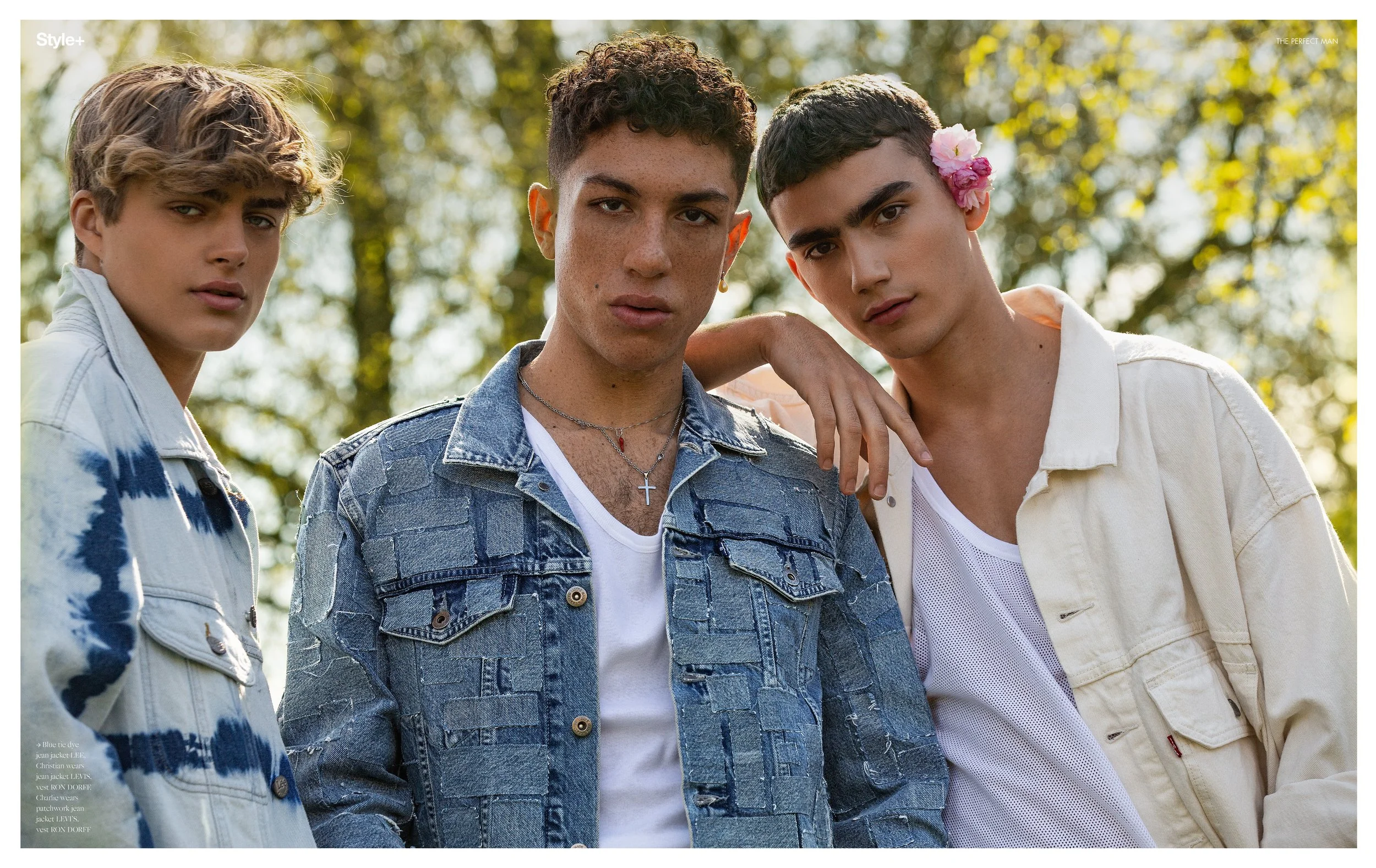 1-2. Signature logo t-shirt BERLUTI 3-4. Cable-knit vest SCOTCH & SODA 5-6. Elis wears cream knit vest STYLISTS’ OWN, relaxed fit jeans LEE, Jacket ABERCROMBIE & FITCH, jeans LEE, Charlie wears jacket WEEKDAY, jeans LEE 6-7. Christian wears green short sleeve shirt NANUSHKA, Charlie wears Sheer vest FENG CHEN WANG 7-8. Charlie wears blue knit jumper SCOTCH & SODA jeans LEE JEANS, Elis wears vintage vest STYLISTS’ OWN, beige trousers ABECROMBIE & FITCH, gold ring MODEL’S OWN 9-10. Signature logo t-shirt BERLUTI, Elis wears pants trousers NANUSHKA, white briefs CALVIN KLEIN 11-12. Blue tie dye jean jacket LEE, Christian wears jean jacket LEVIS, vest RON DORFF, Charlie wears patchwork jean jacket LEVI’S, vest RON DORFF 13-14. Christian wears blue knit jumper SCOTCH & SODA 15-16. Charlie wears black jacket WEEKDAY, beige jacket ABECROMBIE & FITCH