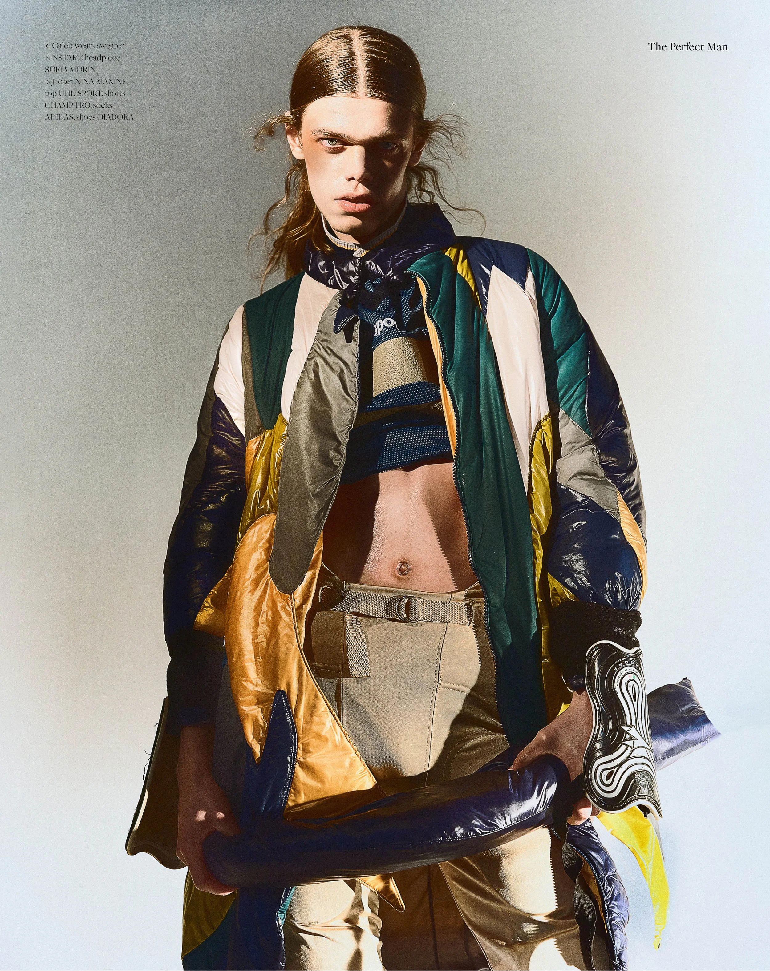 1-2. Caleb Budd wears top CORINNA BAKER, Grid Iron shoulder pads MARKWORT, shorts CORINNA BAKER, crochet headpiece MILA SULLIVAN, shoes ZARA, bag ALALUNA 3-4. Caleb wears sweater EINSTAKT, headpiece SOFIA MORIN, Jacket NINA MAXINE, top UHL SPORT, shorts CHAMP PRO, socks ADIDAS, shoes DIADORA 5-6. Caleb wears sweater EINSTAKT,  shorts A/CONIC, headpiece SOFIA MORIN, sunglasses AKILA, boots ANI 7-8. Caleb wears jacket EMPIRE SPORTING GOODS, striped bodysuit SOFIA MORIN, collar SOFIE & IRIS, sunglasses AKILA, socks ADIDAS 9-10. Caleb wears jacket VERSURA, cycling suit SPONEED, socks ADIDAS, sport shoes RAWLINGS, sunglasses AKILA x KKCO, bag YAKPAK 11-12. Caleb wears jacket NINA MAXINE, top UHL SPORT, shorts CHAMP PRO, socks ADIDAS, shoes DIADORA, Top CORINNA BAKER, Grid Iron shoulder pads MARKWORT, shorts CORINNA BAKER, crochet headpiece MILA SULLIVAN, shoes ZARA, bag ALALUNA