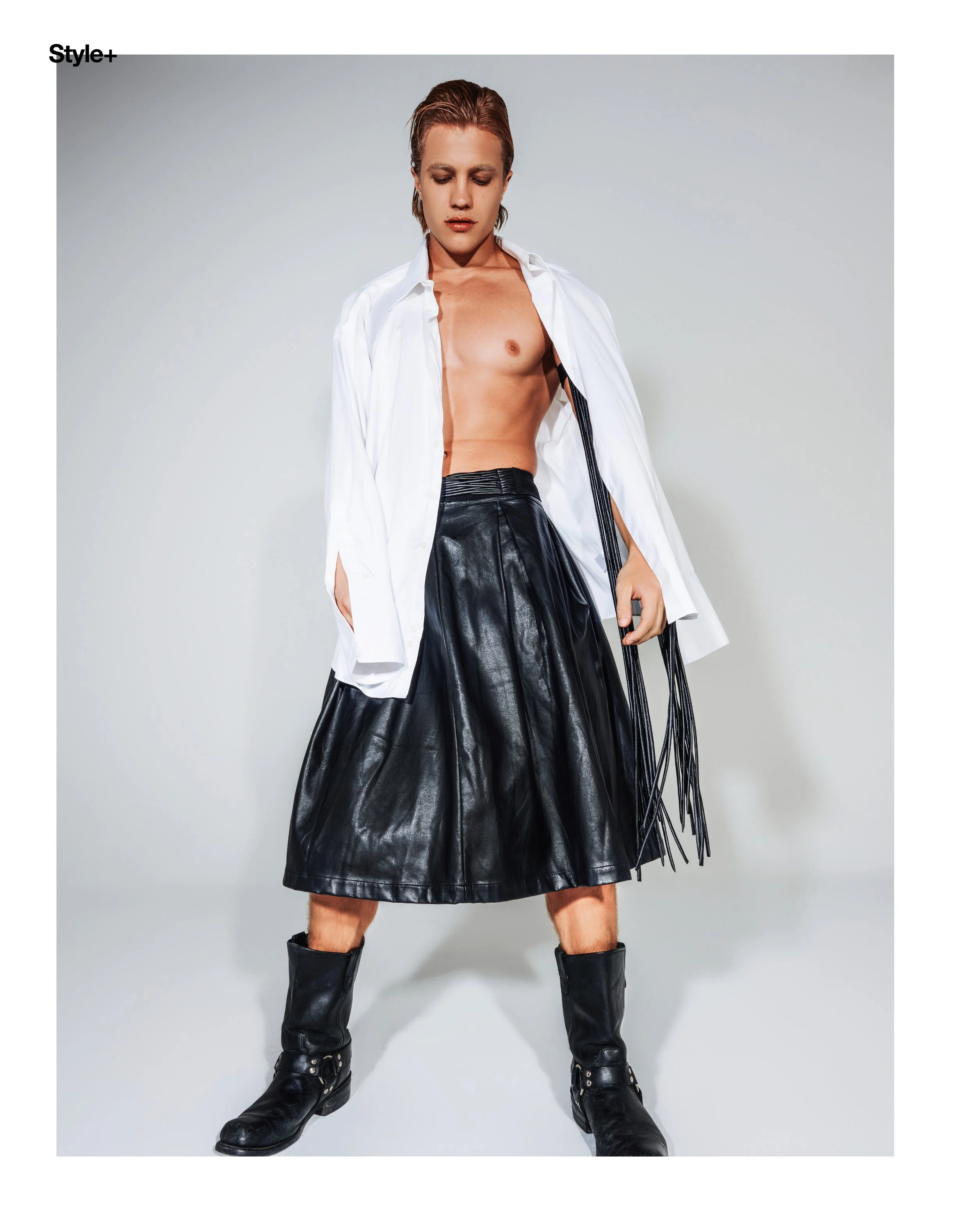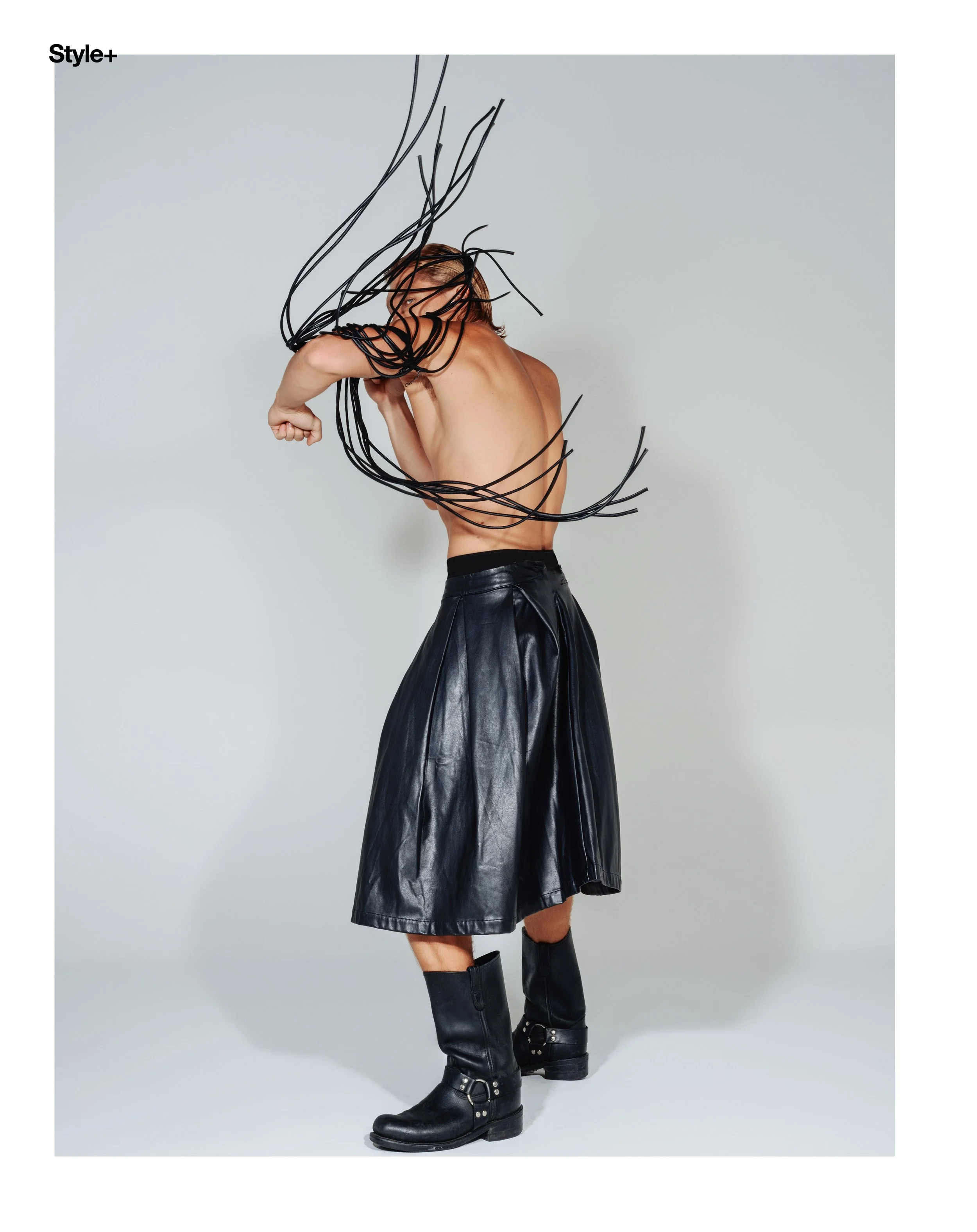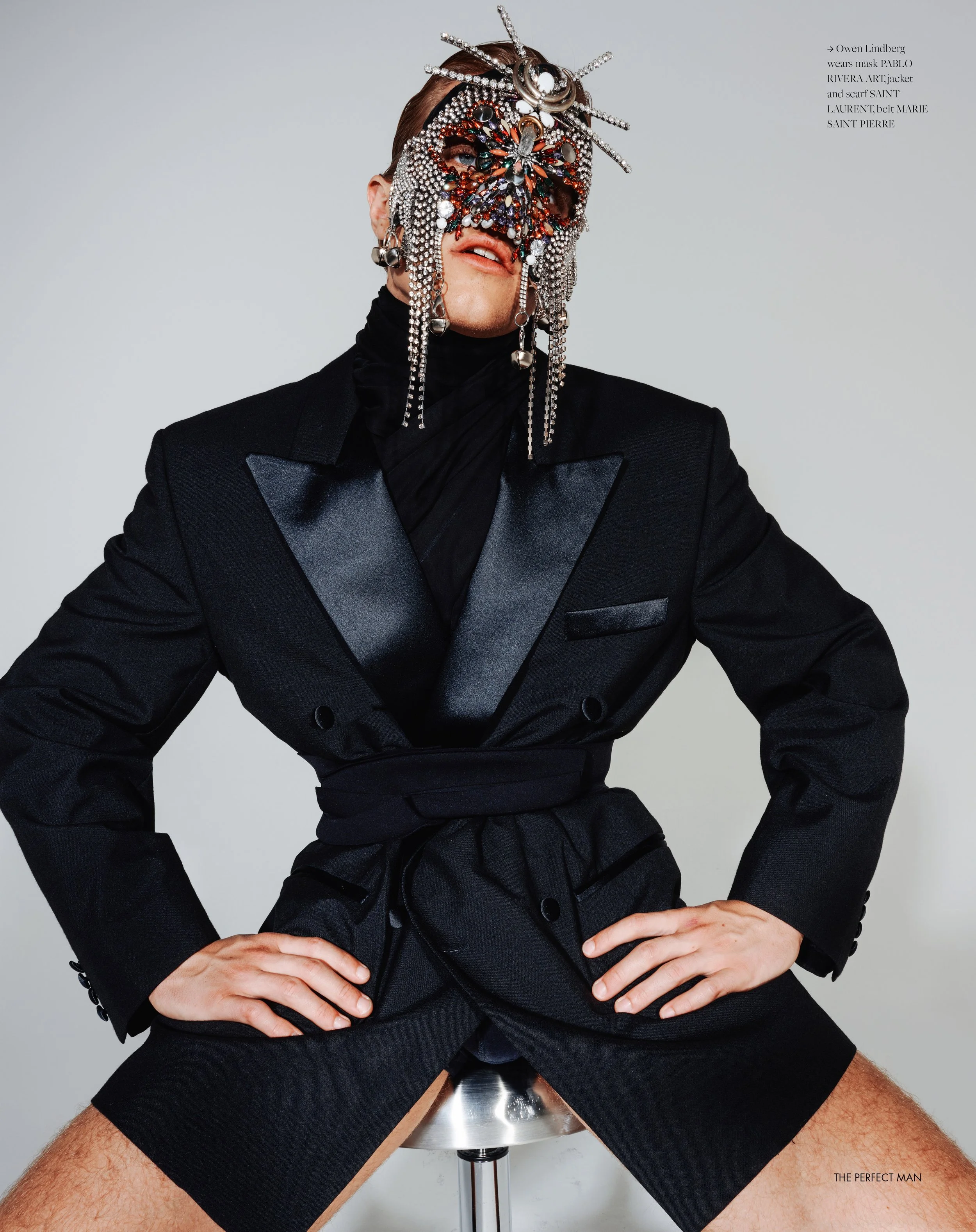 1-2. Owen Lindberg wears mask PABLO RIVERA ART, jacket and scarf SAINT LAURENT, belt MARIE SAINT PIERRE 3-4. Owen wears suit JAMES 113, shoes CALVIN KLEIN x RAF SIMONS, shirts SAINT LAURENT, Jacket MARIE SAINT PIERRE, pants MICLOTT, belt MARIE SAINT PIERRE, gloves BURBERRY, shoes 1017 ALYX 9SM 5-6. Owen wears armband and belt MARIE SAINT PIERRE, skirt ANN DEMEULEMEESTER, boots HARLEY DAVIDSON, Jacket MARIE SAINT PIERRE, garter AGENT PROVOCATEUR 7-10. Owen wears shirt ACNE STUDIOS, armband and belt MARIE SAINT PIERRE, skirt ANN DEMEULEMEESTER, boots HARLEY DAVIDSON, Jacket MARIE SAINT PIERRE, tank ORTTU, shorts MAISON MARGIELA 11-12. Owen wears shirt ACNE STUDIOS, armband and belt MARIE SAINT PIERRE, skirt ANN DEMEULEMEESTER, boots HARLEY DAVIDSON, Jacket MARIE SAINT PIERRE, garter AGENT PROVOCATEUR