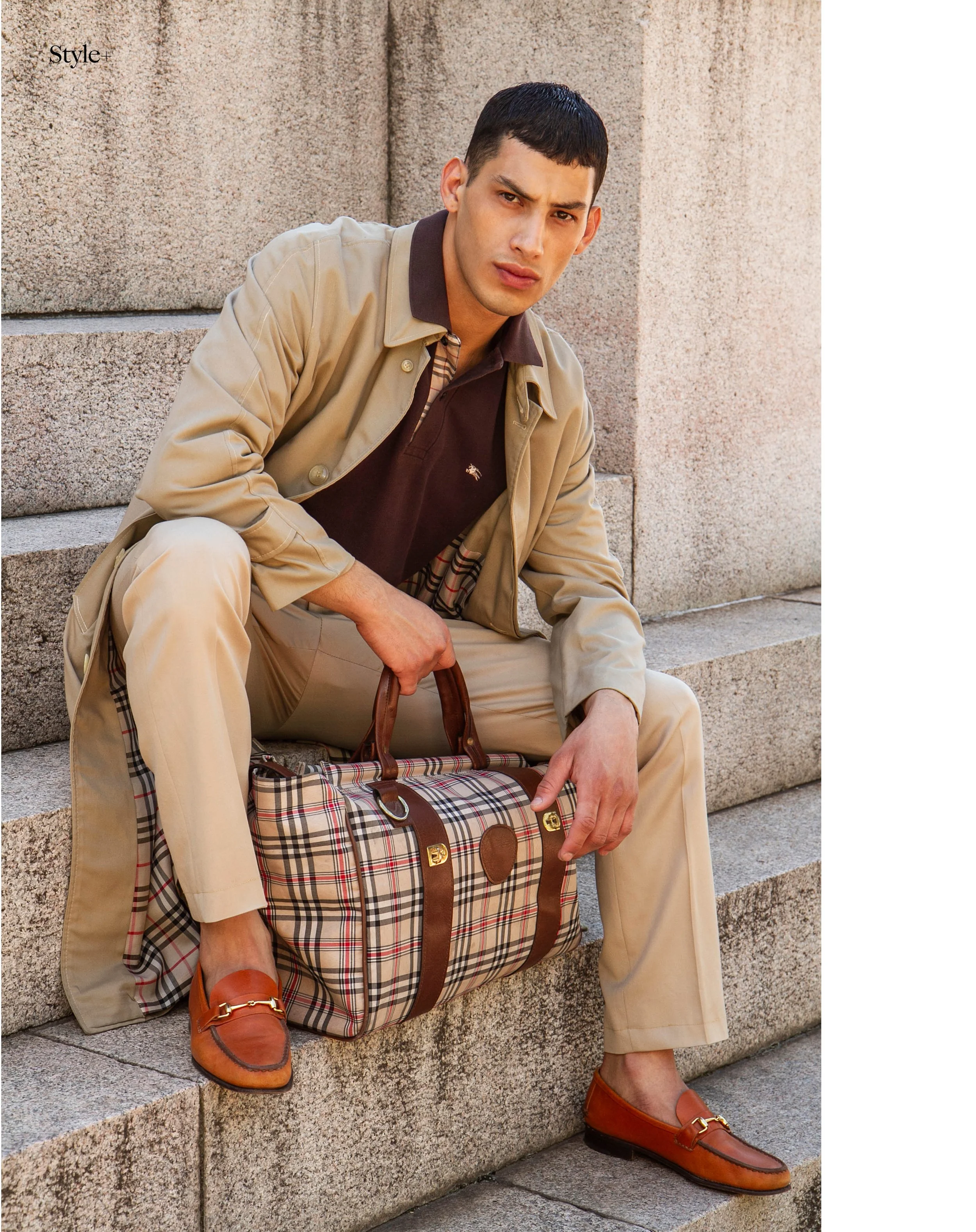 1-4. Erik Griffith wears complete look GUCCI, Complete look BURBERRY, shoes